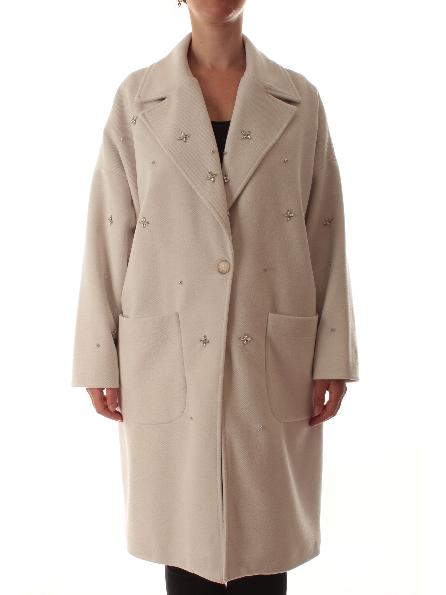 Cappotto in panno con applicazioni gioiello all-over, due tasche a toppa e rever classico. Chiusura monopetto con bottone. Altezza modella: 170 cm. Taglia indossata: 46. 92% poliestere, 8% viscosa