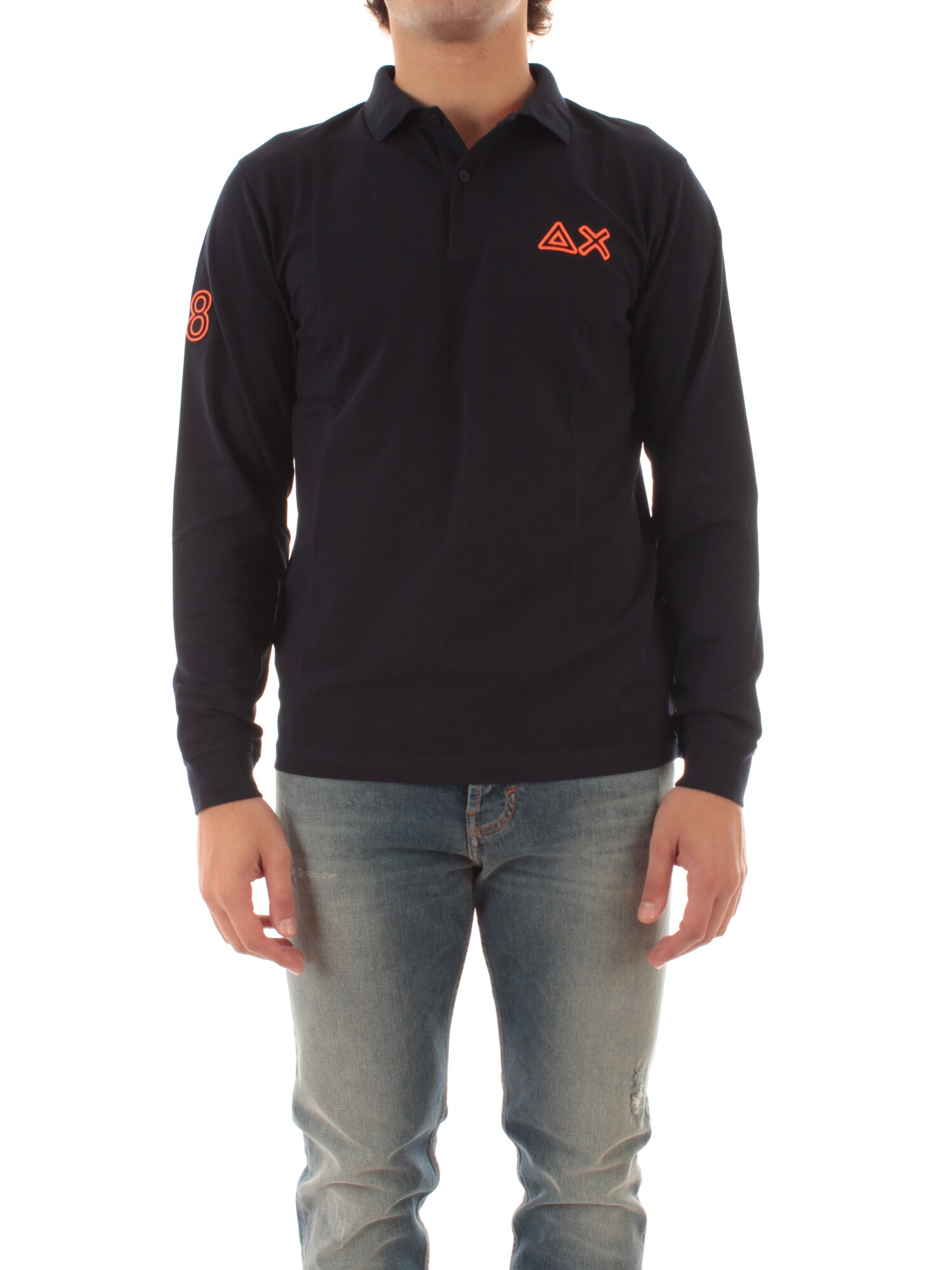 Sun 68 polo in cotone con logo fluo da uomo navy blue