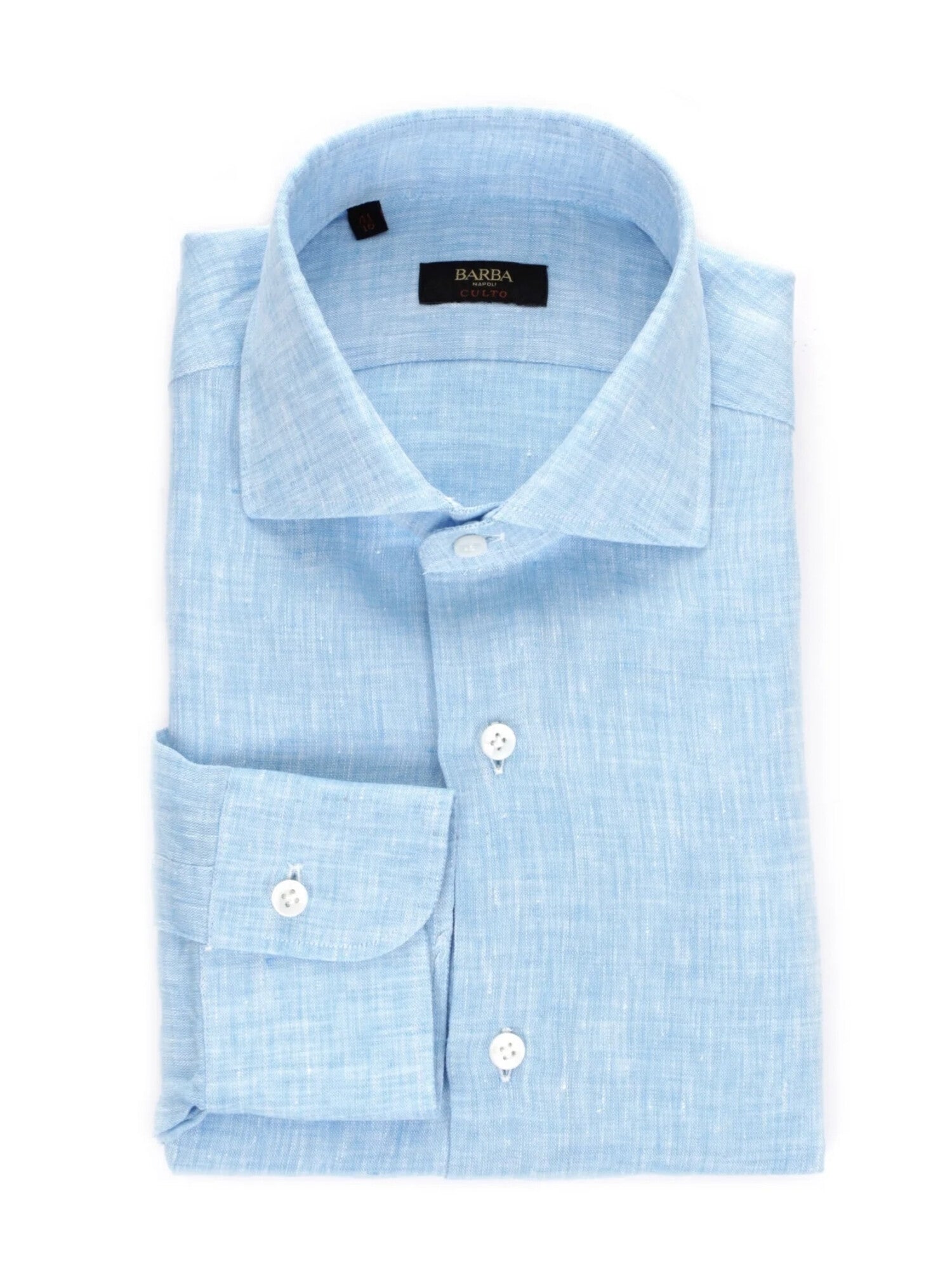 La camicia modello Culto, a maniche lunghe, con collo francese è realizzata in lino 100%. Vestibilità slim. Made in Italy.