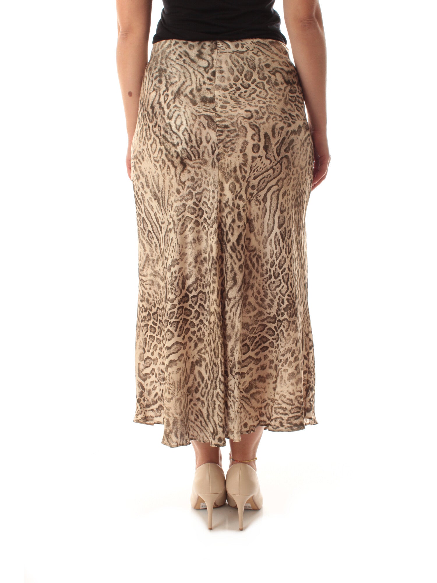 Gonna midi in twill di viscosa stampato animalier, con elastico in vita e taglio in sbieco. Altezza modella: 170 cm. Taglia indossata: 46. 100% viscosa
