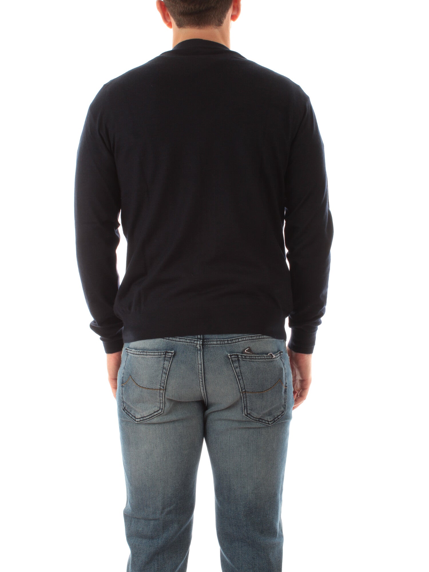 Cardigan in misto seta e cashmere con profili a costine e manica lunga. Chiusura con bottoni. Altezza modello: 185 cm. Taglia indossata: 48. 70% Cashmere, 30% Seta