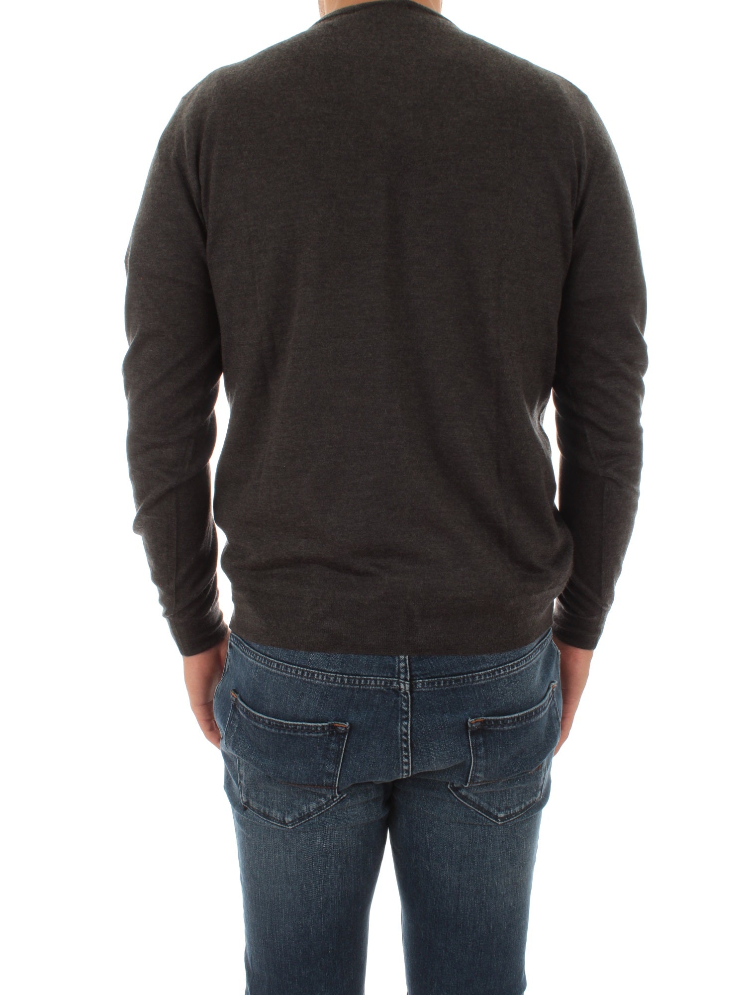 Pullover a manica lunga in misto seta con scollo a V. Altezza modello: 190 cm. Taglia indossata: 52. 70% Cashmere, 30% Seta