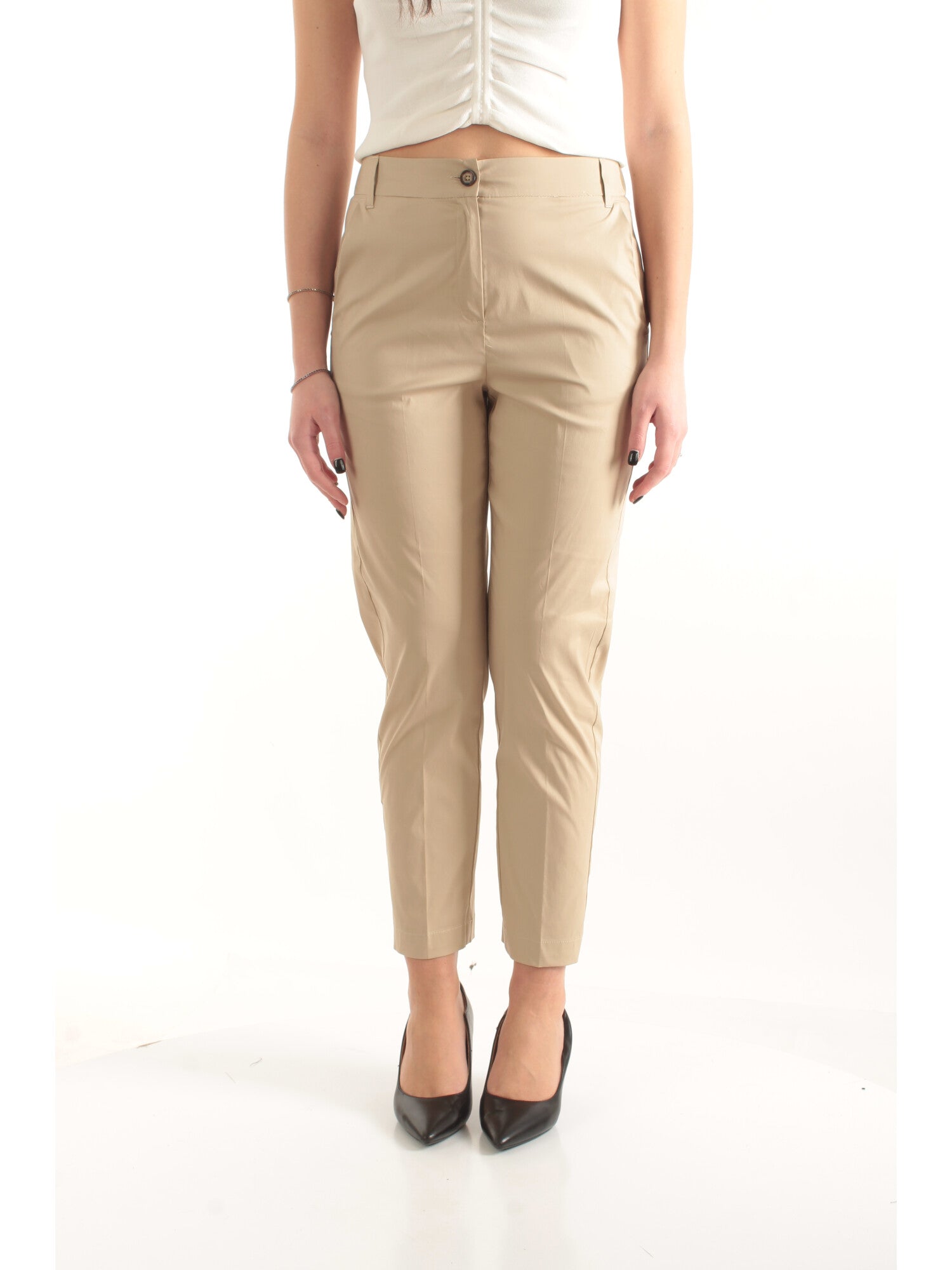 Pantaloni in popeline misto cotone. Linea semiaderente. Chiusura con bottone e zip nascosta, tasche alla francese. Elastico in vita sul retro. Fit regolare. Altezza modella: 170 cm. Taglia indossata: 40. 70% cotone, 25% poliammide, 5% elastan.