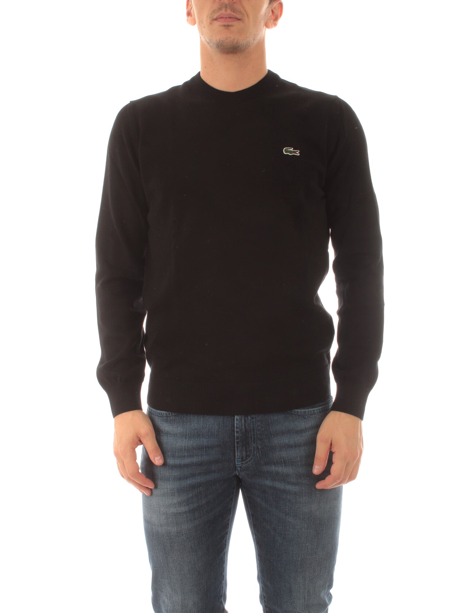 Lacoste pullover da uomo con collo rotondo in cotone organico nero