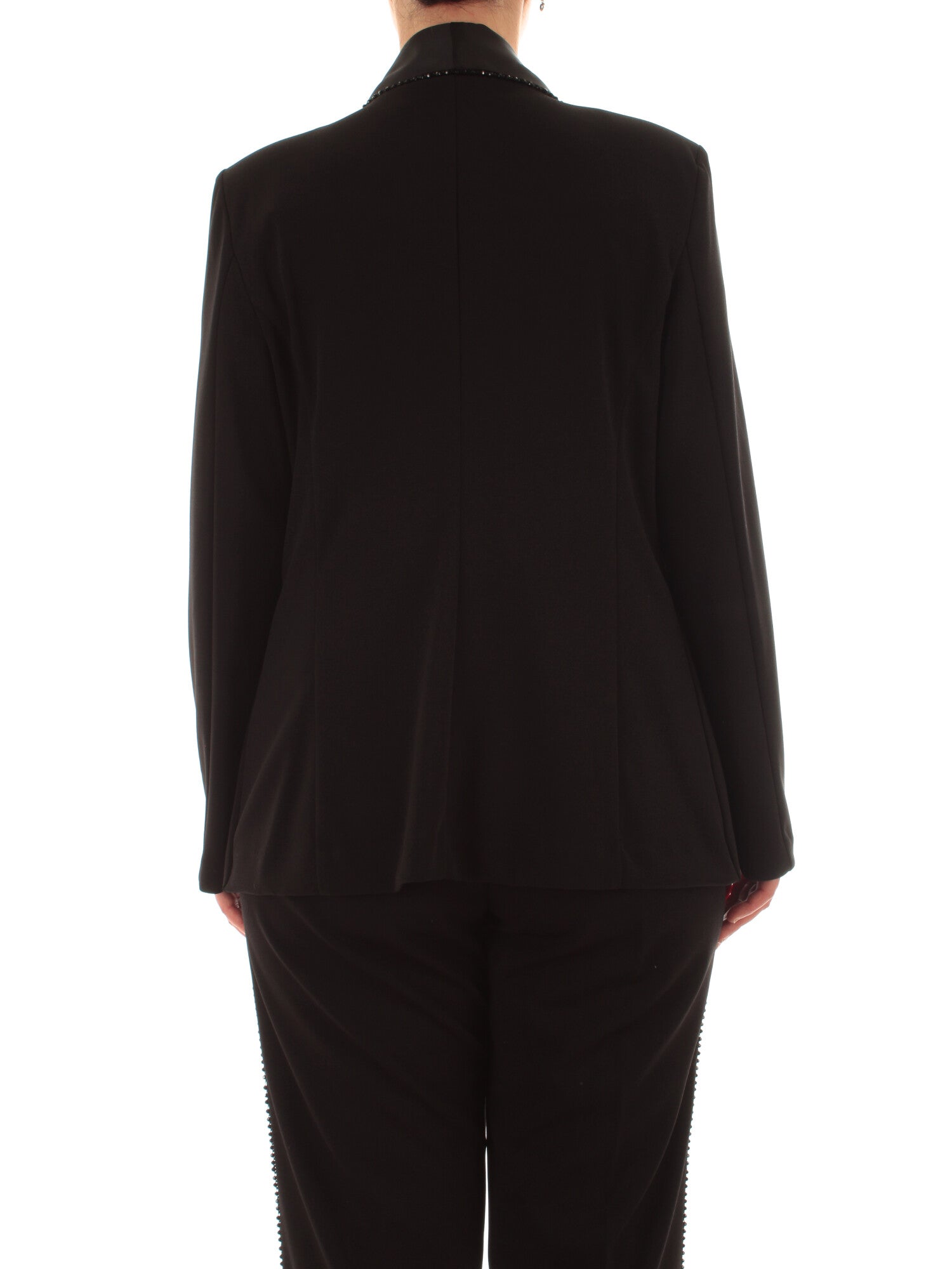 Blazer con perline applicati in tono con rever in raso e bottone gioiello. Altezza modella: 170 cm. Taglia indossata: 44. 95% Poliestere, 5% elastan