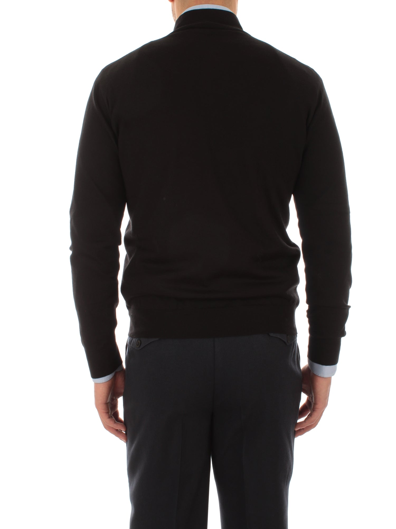Maglia lupetto in pura lana merinos con zip. Collo, polsini e fondo a costine. Altezza modello: 190 cm. Taglia indossata: 52. 100% Lana merinos.
