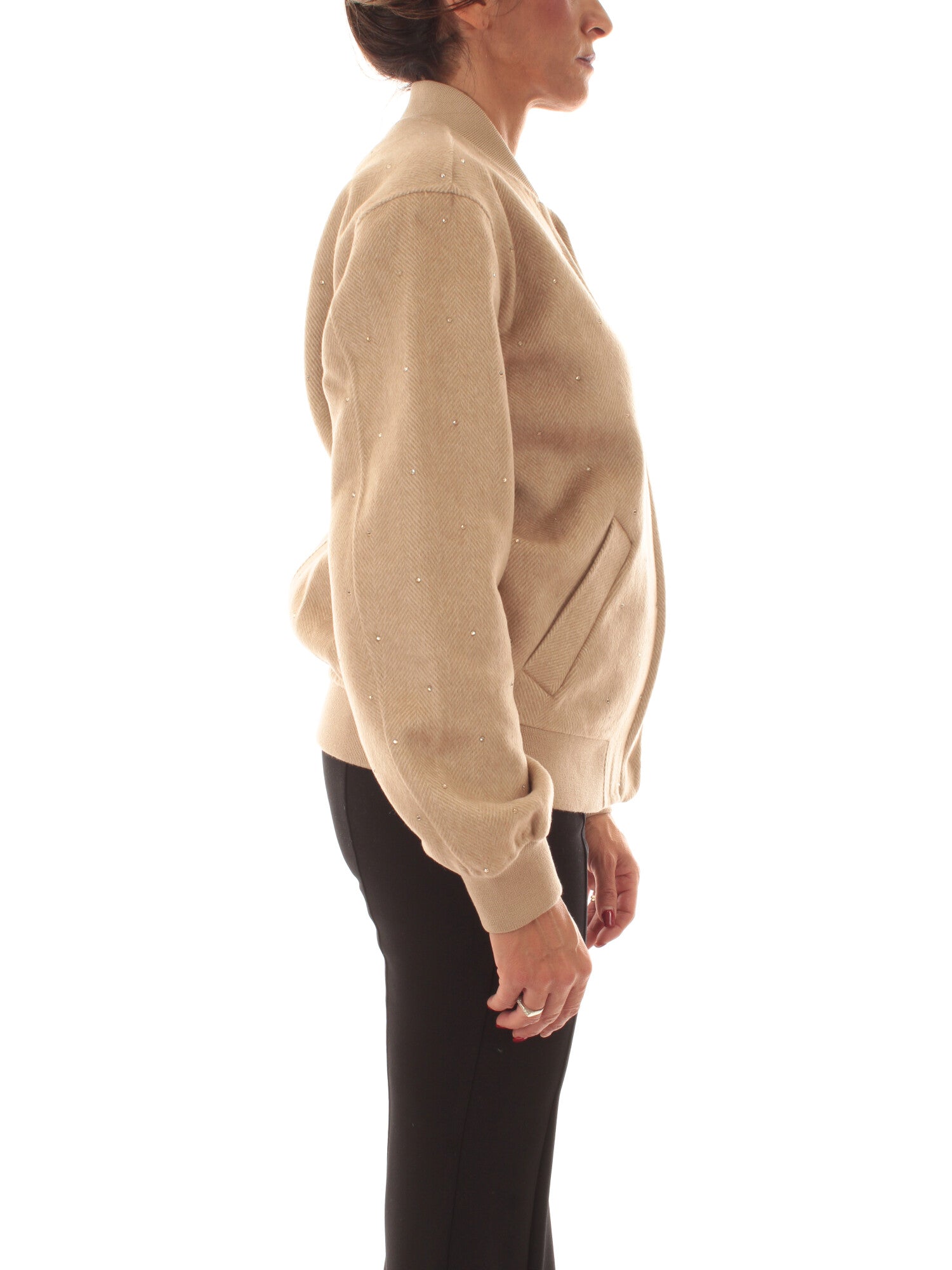 Giacca in panno double con polsini in maglia elastica, tasche a filo e chiusura nascosta con zip. Ricamo di strass all-over e logo ricamato sul petto. Altezza modella: 172 cm. Taglia indossata: S. 80% lana, 20% poliestere