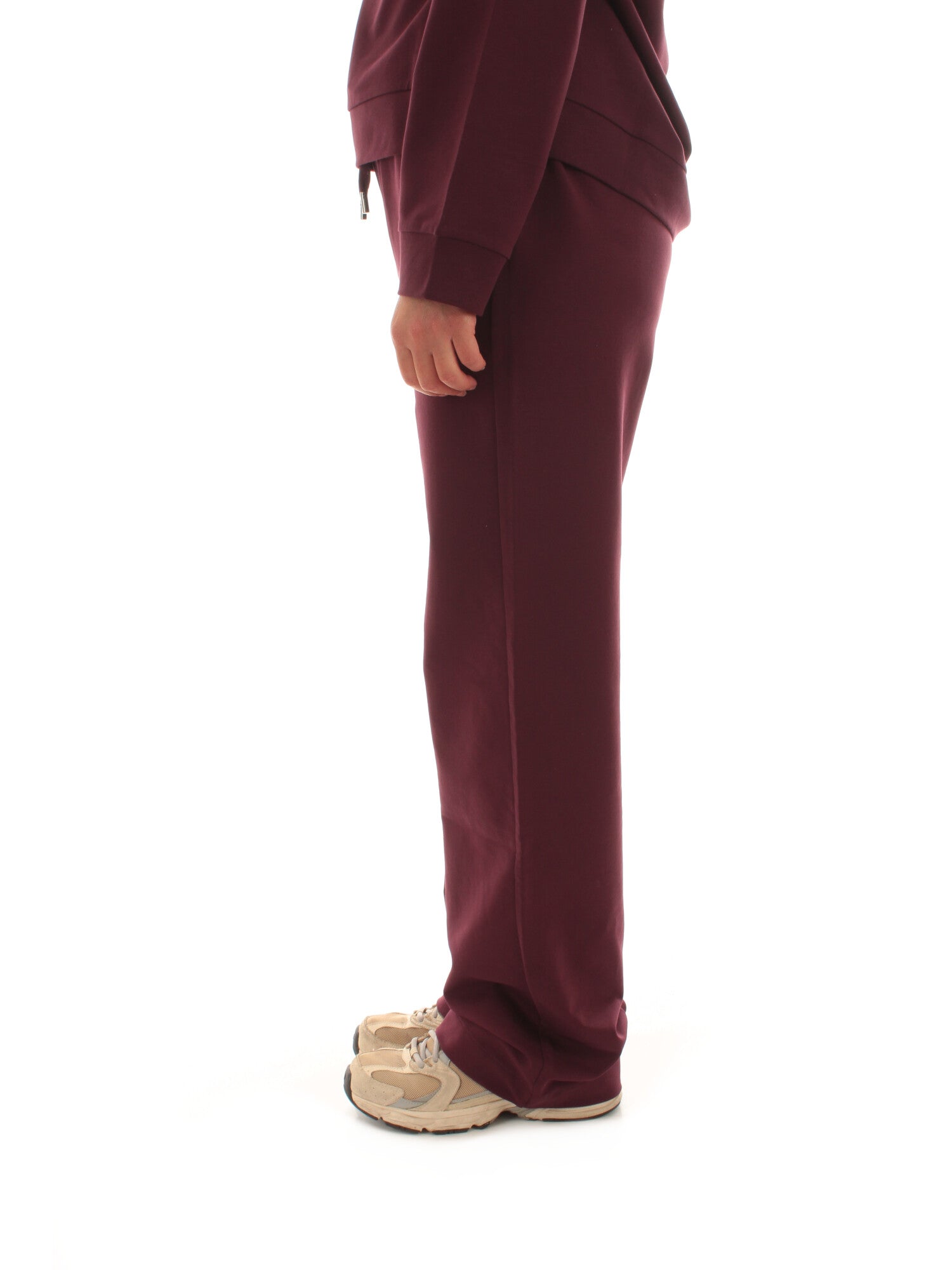 Pantaloni in felpa di cotone stretch. Linea jogging e ampia. Elastico in vita con coulisse. Tasche ai fianchi. Altezza modella: 170 cm. Taglia indossata: 40. 96% cotone, 4% elastan