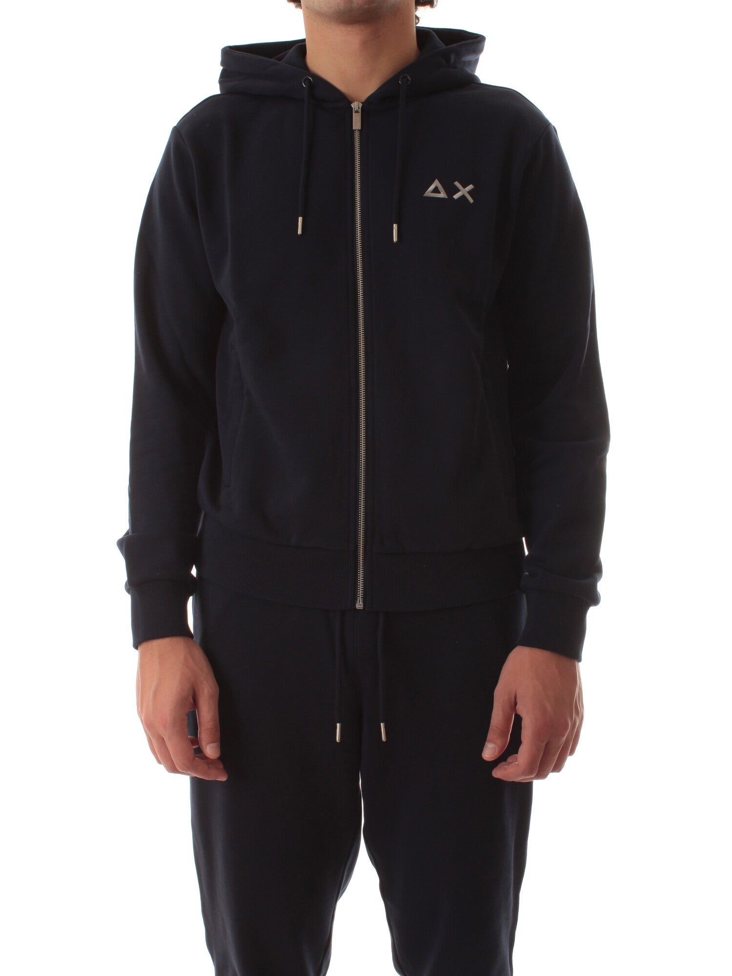 Felpa in misto cotone. Cappuccio con coulisse. Maniche lunghe. Tasche laterali. Logo SUN68 ricamato sul petto. Chiusura con zip. Altezza modello: 185 cm. Taglia indossata: M. 84% Cotone, 16% Poliestere