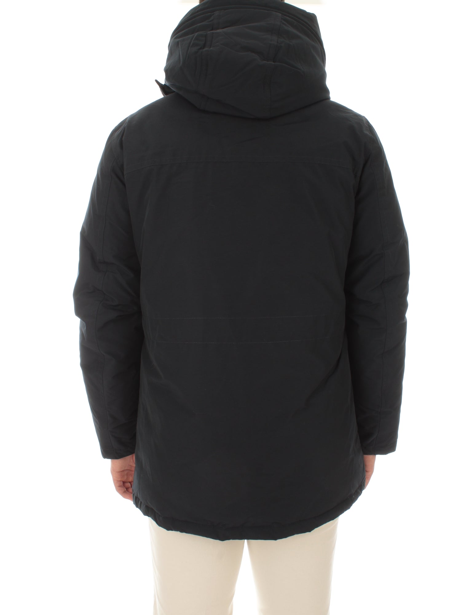 Rivisitazione del classico Arctic Parka. Realizzato in tessuto Ramar Cloth resistente all'acqua e al vento, imbottito in piuma d'anatra 90/10, cappuccio con zip per mostrare scritta Woolrich o nasconderla, collo alto, linguetta sul colletto con velcro e logo staccabile, chiusura con quattro bottoni e zip nascosta, coulisse interna in vita, tasche scaldamano a doppio ingresso con zip, tasche con patta e bottone a pressione, tasche interne, polsini interni a costine. Altezza modello: 190 cm. Taglia indossata: L. Esterno: 60% Cotone, 40% Poliammide. Interno: 100% Poliammide. Imbottitura: 90% Piumino d'anatra grigia, 10% Piuma.