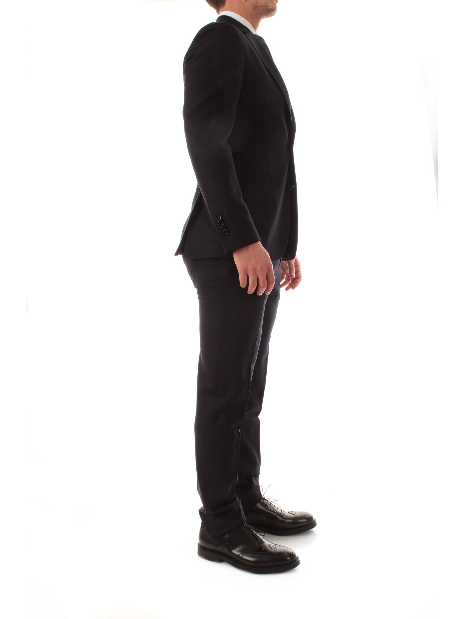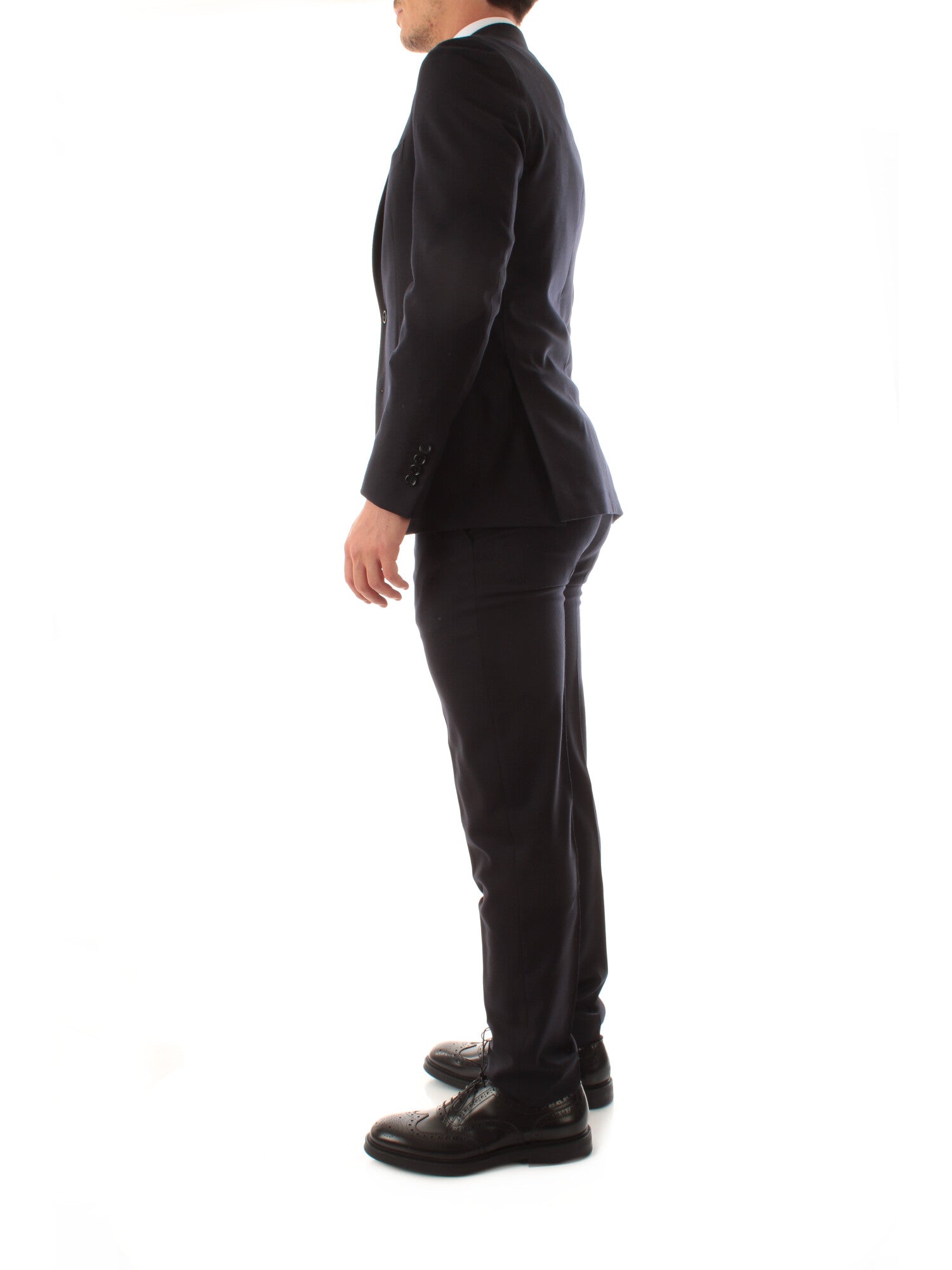 Abito monopetto con due tasche a toppa e una a barchetta. Spacchi laterali. Sfoderato. Pantalone ventre piatto senza pence. Altezza modello: 185 cm. Taglia indossata: 50. 98% lana, 2% elastan