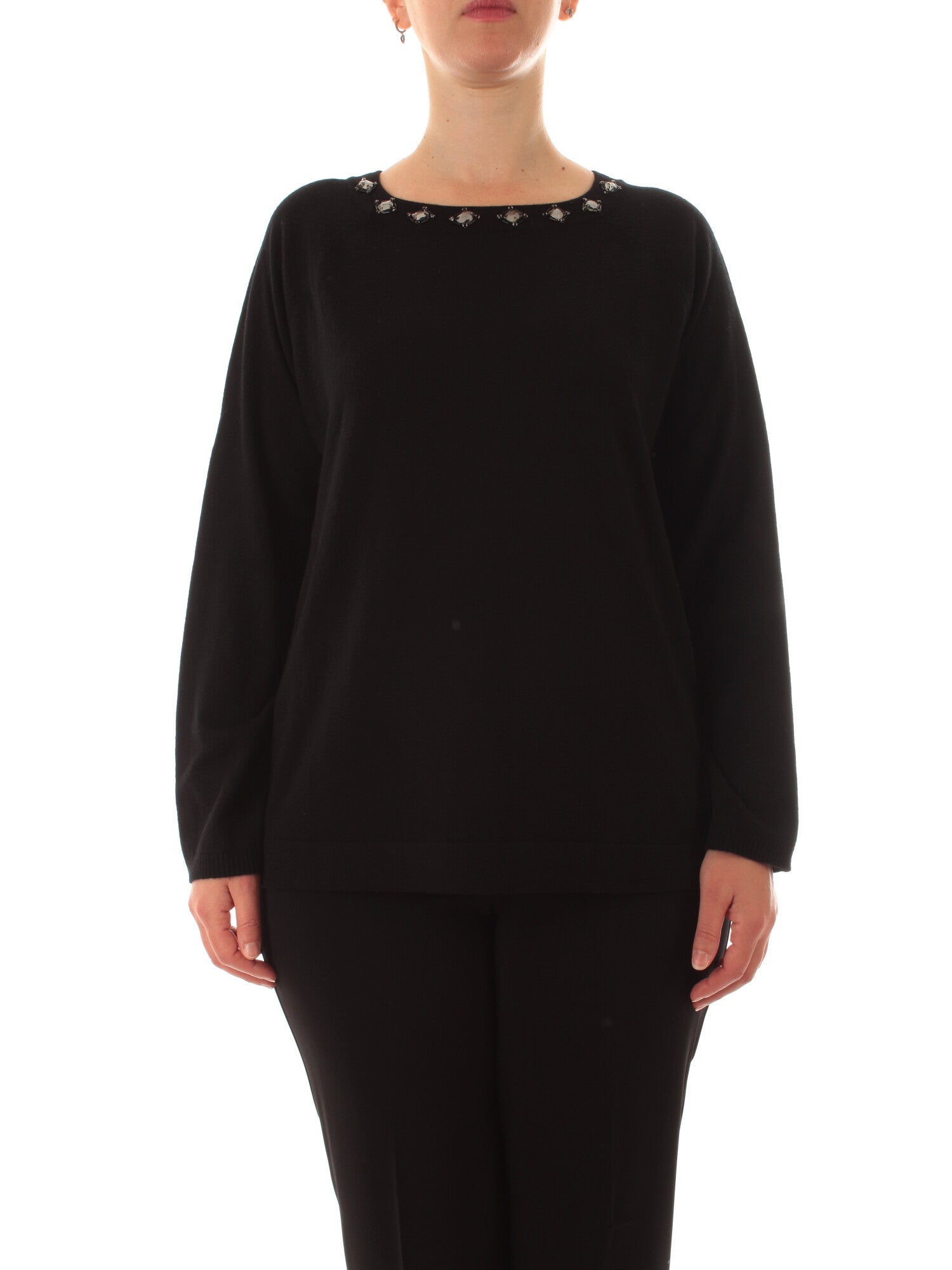 Maglia in filato rasato con collo tondo decorato da dettagli gioiello. Maniche lunghe e profili a costine. Altezza modella: 170 cm. Taglia indossata: S. 37% viscosa, 29% lana, 28% poliestere, 6% cashmere
