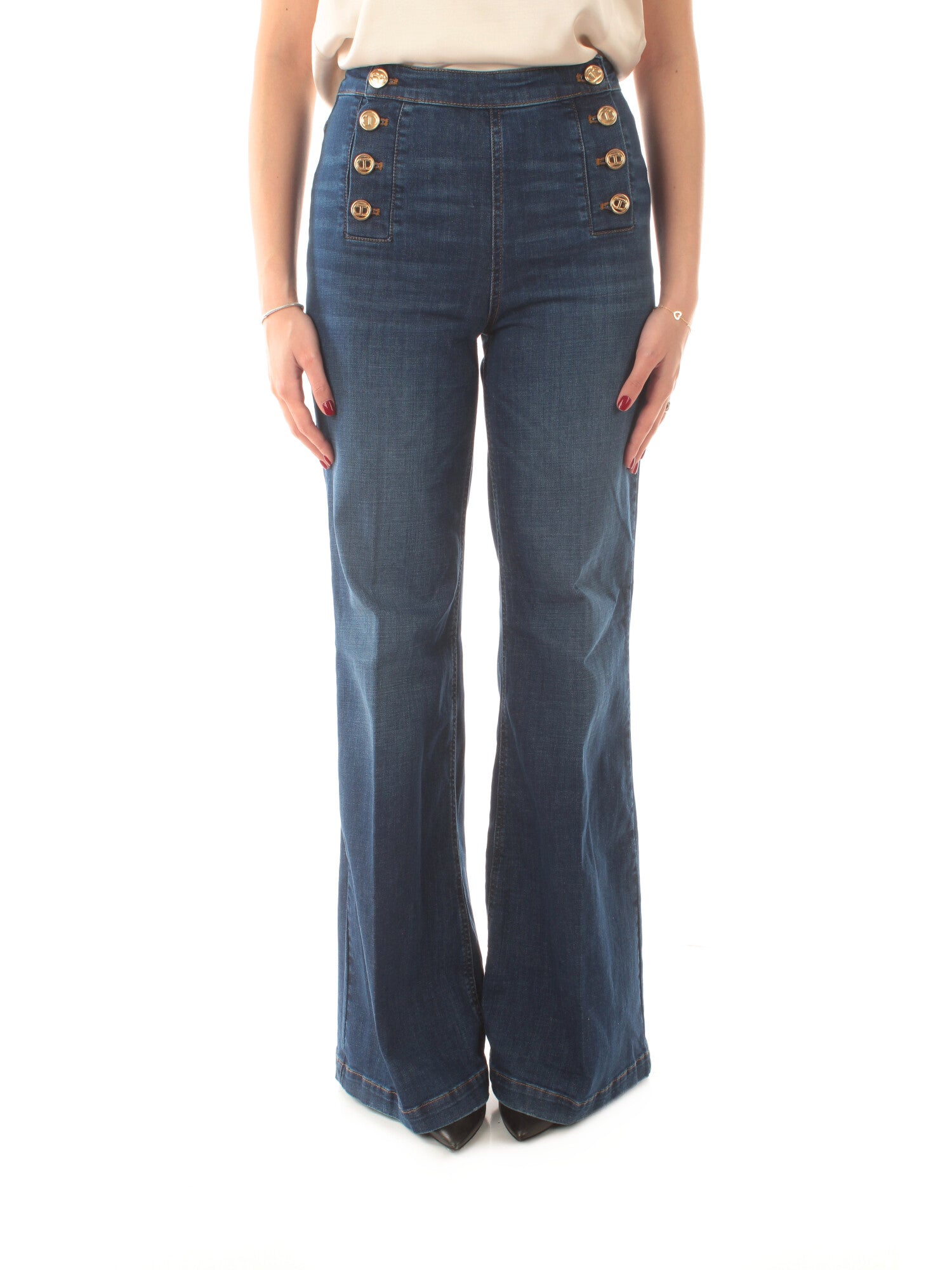 Jeans in cotone con doppia abbottonatura, d'ispirazione marinière, con bottoni Oval T décor. Vita regular, chiusura con bottoni a chiodo, tasche decorative a filetto sul dietro, linea wide leg leggermente flared. Altezza modella: 170 cm. Taglia indossata: 26. 98% cotone 2% elastan