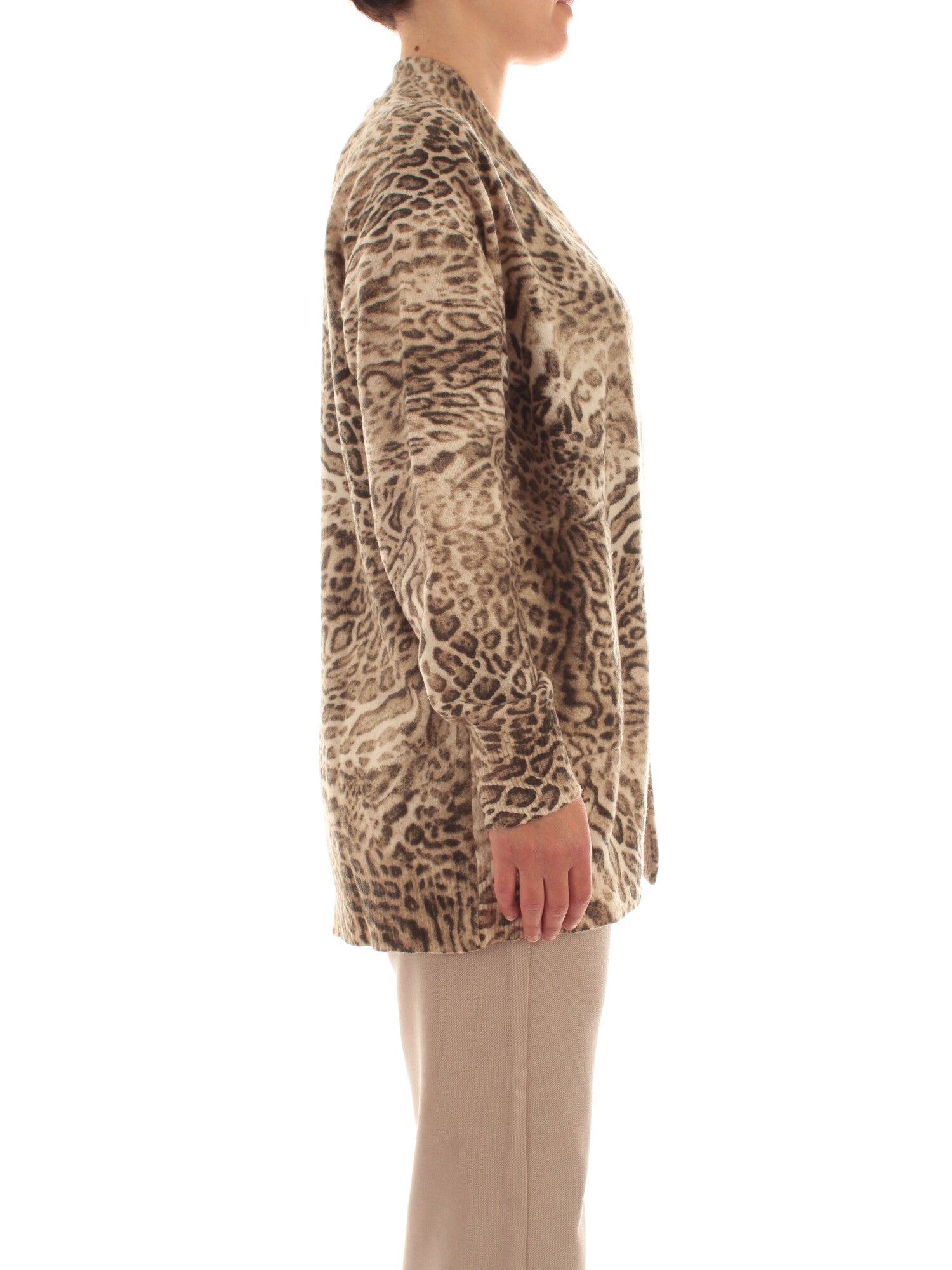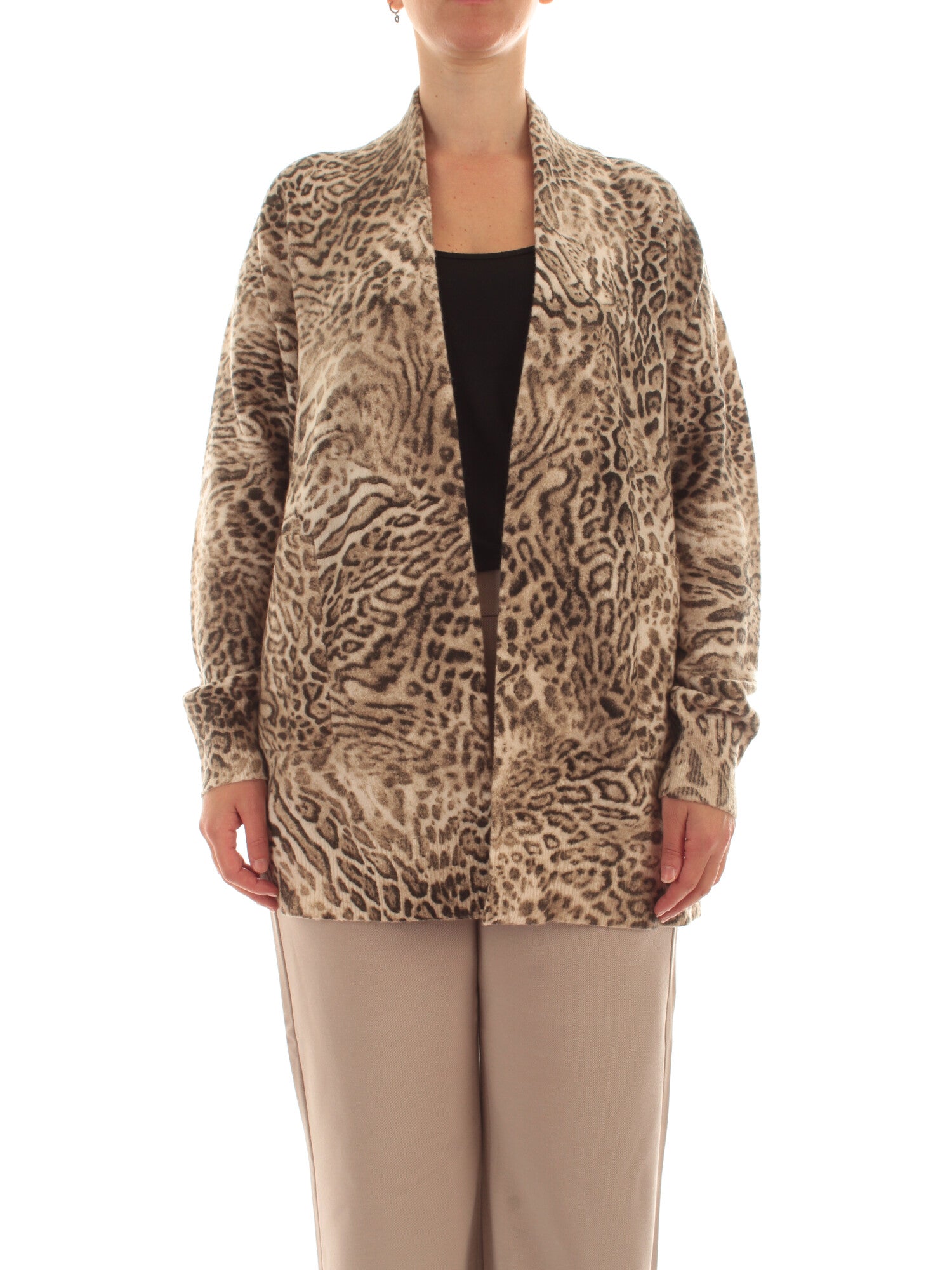 Cardigan lungo dalla stampa animalier. Cardigan lungo in filato misto lana e yack dalla stampa animalier realizzata con tecnica digitale. Aperto davanti, dalla linea avvolgente e spalla scesa. Altezza modella: 170 cm. Taglia indossata: S. 46% lana, 38% poliammidica, 10% yack, 6% elastan
