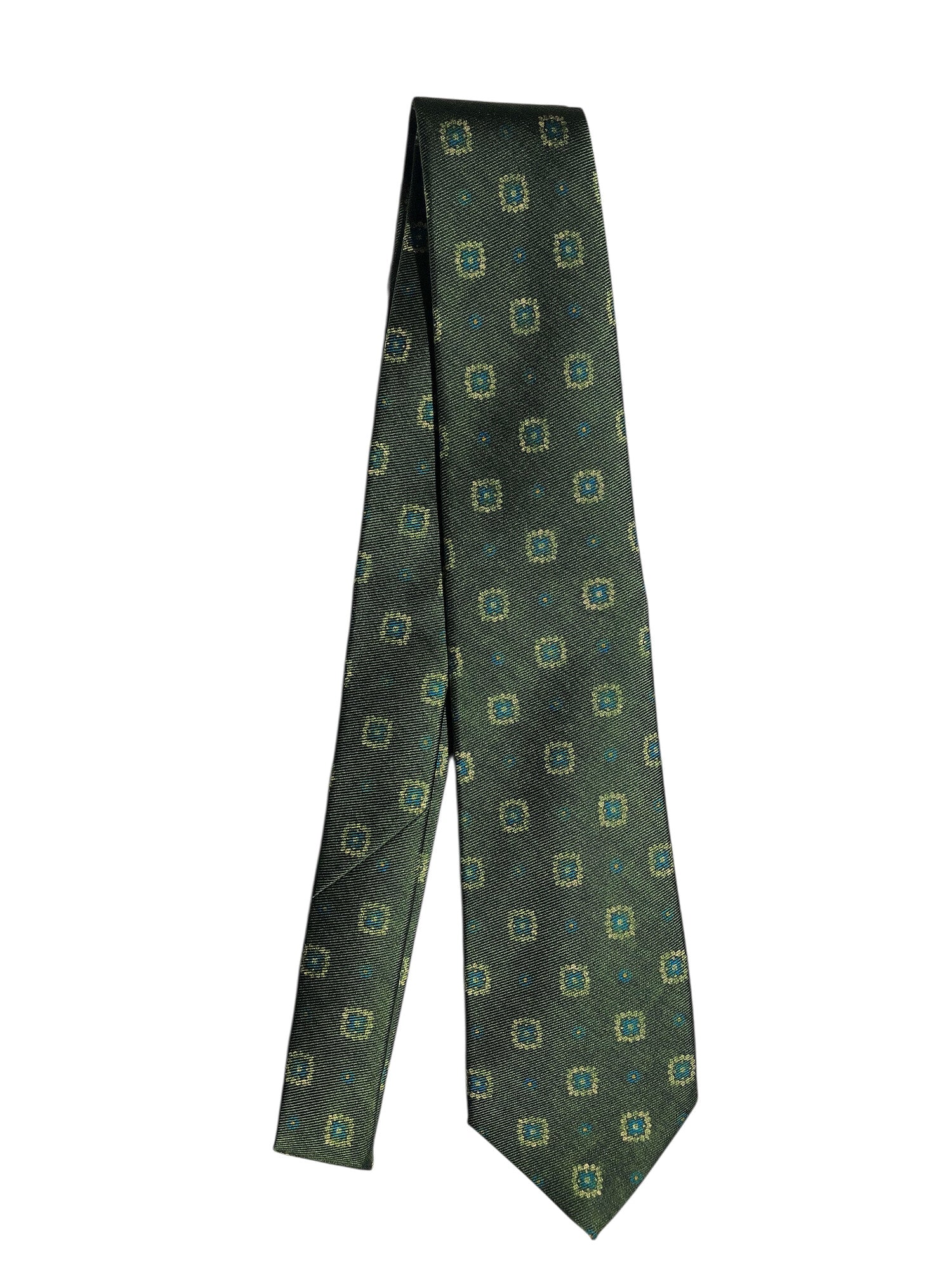 Kiton cravatta 7 pieghe in seta stampata verde da uomo