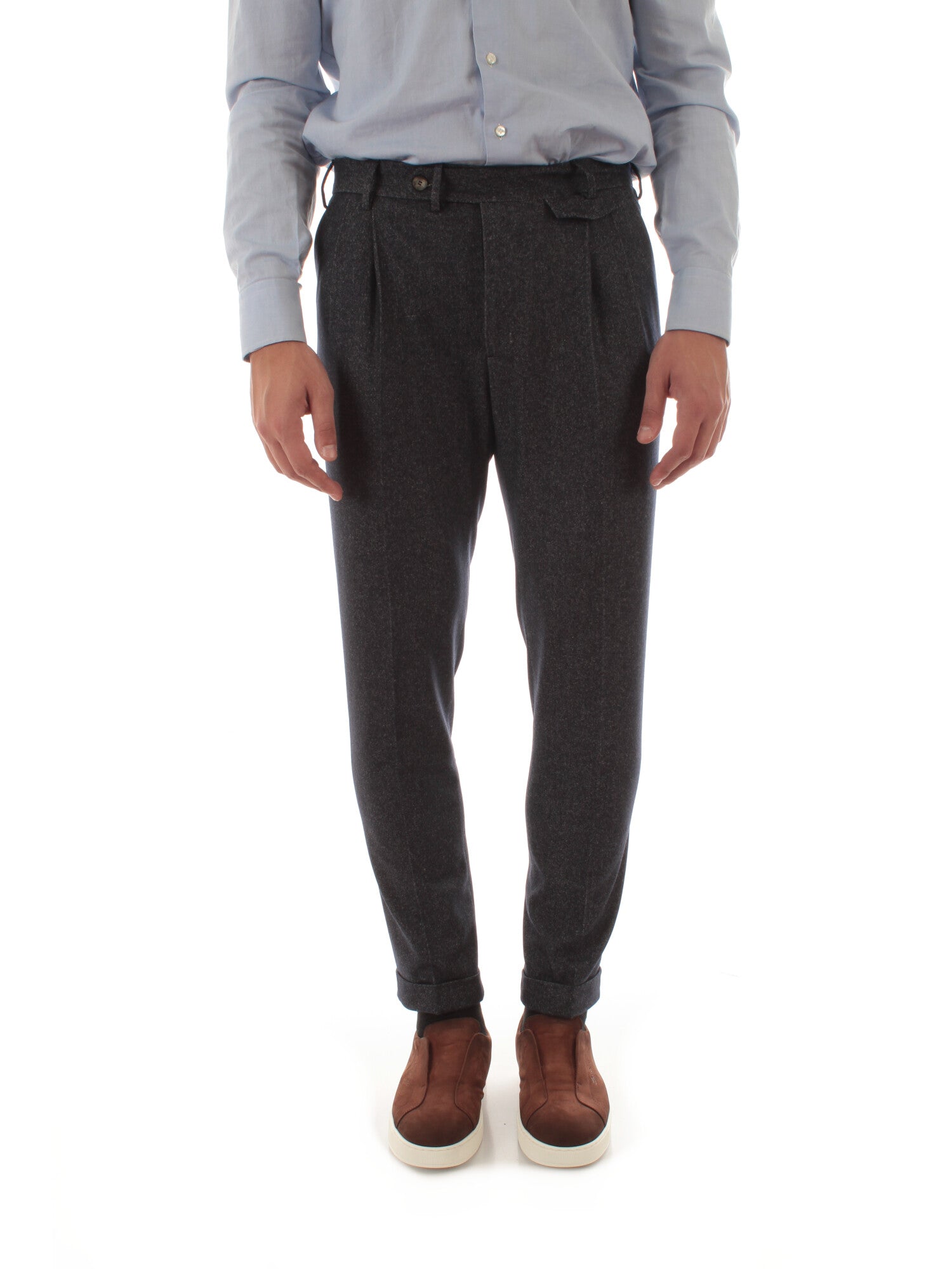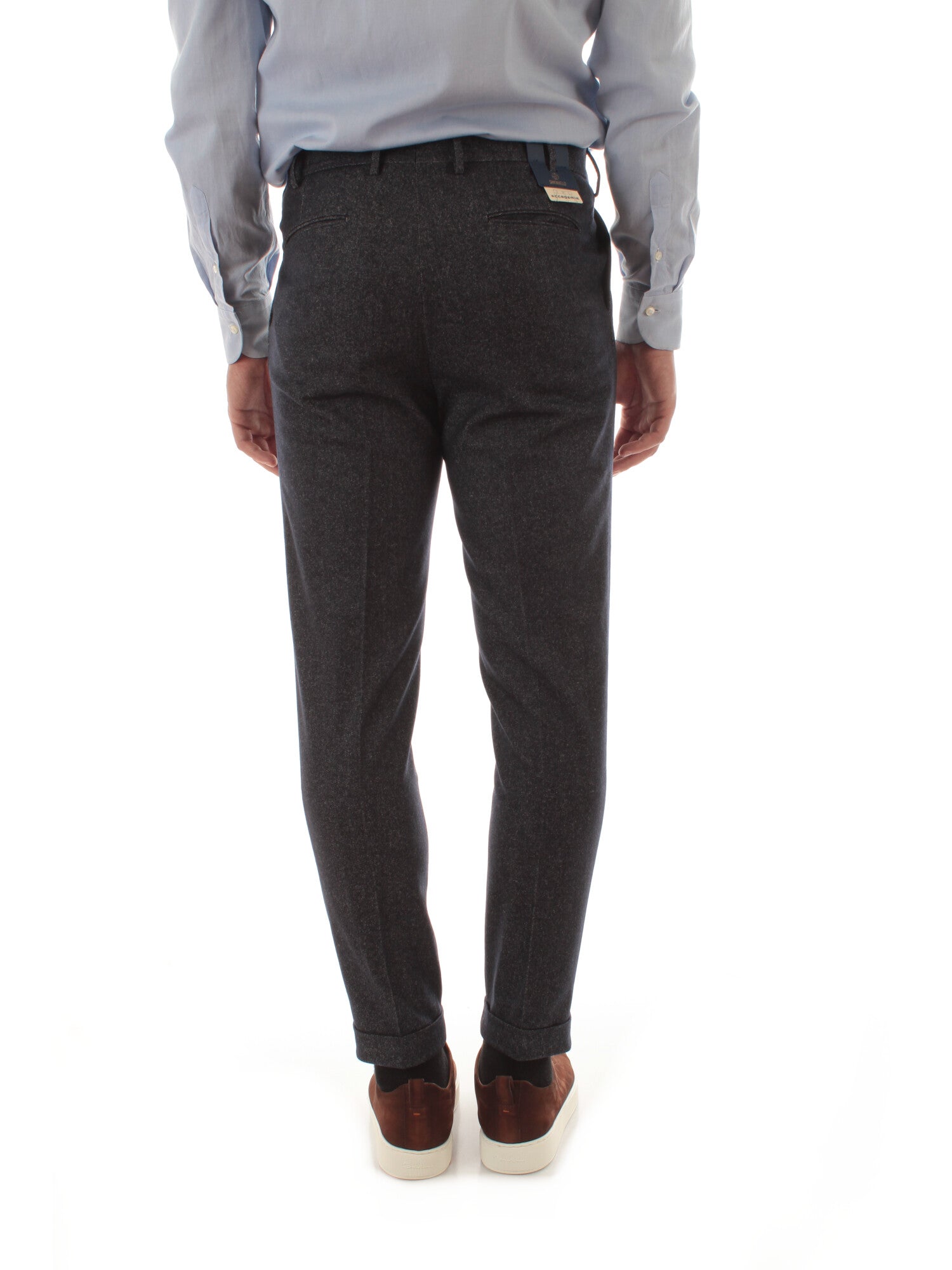Pantalone con pence, in tessuto effetto denim. Tasca America davanti a filo sul retro. Chiusura con zip e bottone. Altezza modello: 187 cm. Taglia indossata: 50. 42% cotone, 39% lana, 14% poliammide, 3% cashmere, 2% elastan