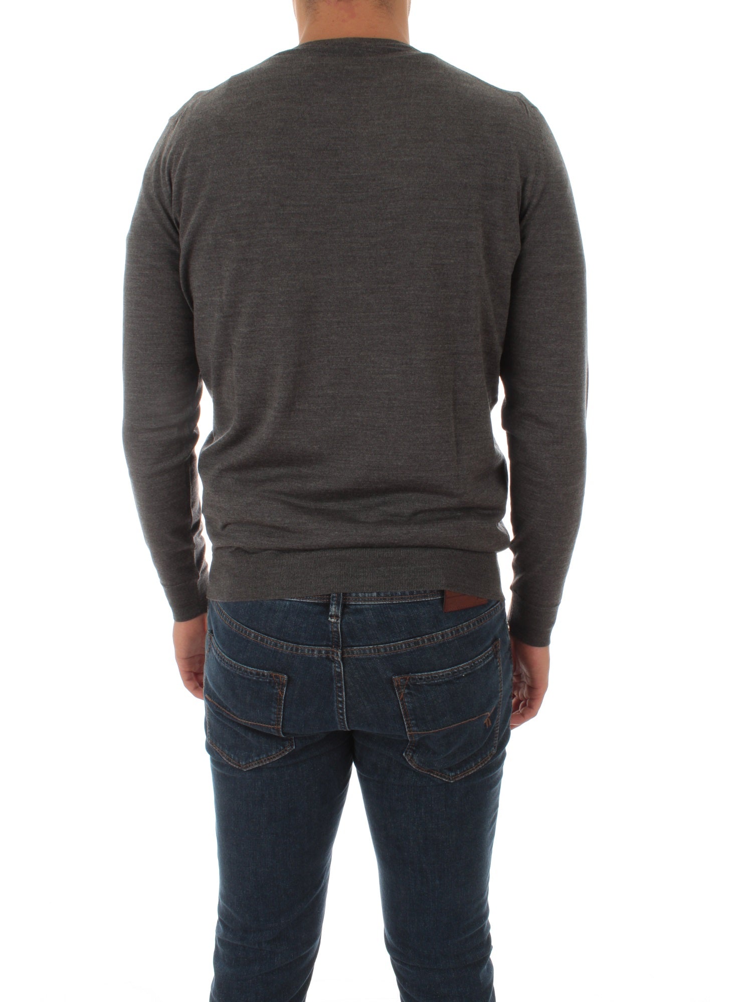 Maglia girocollo in lana Modern con manica lunga e profili lavorati a costine. Altezza modello: 190 cm. Taglia indossata: 52. 100% Lana Merino Superfine 140's