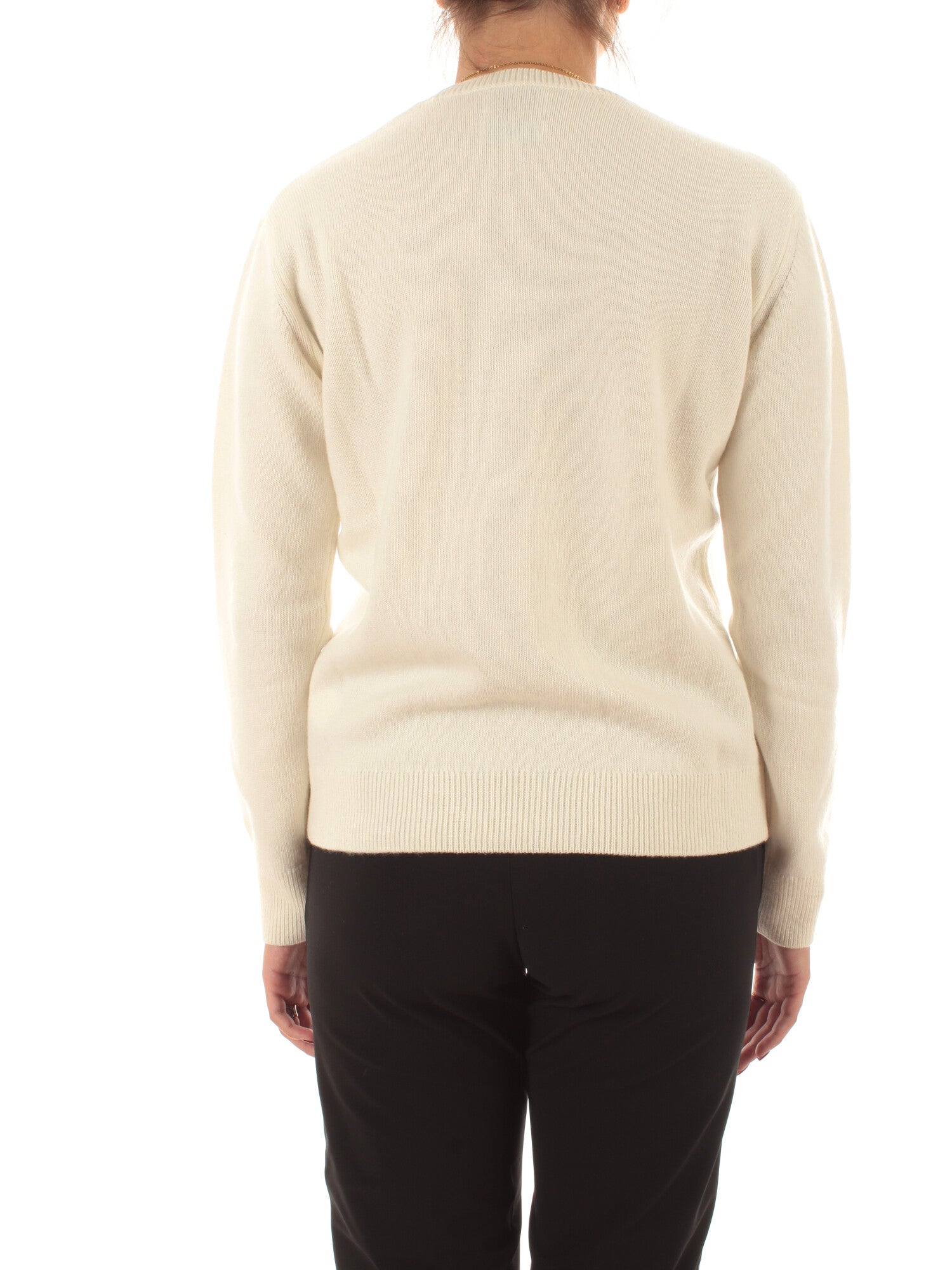 Maglia girocollo jacquard. Collo, polsi e fondo lavorati a costine. Altezza modella: 170 cm. Taglia indossata: S. 40% Lana, 30% Viscosa, 20% Poliammide, 10% Cashmere