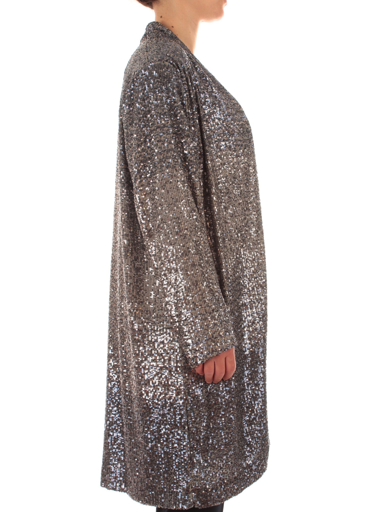 Spolverino in paillettes sfumate. Linea dritta. Maniche lunghe. Spacchi laterali. Foderato. Altezza modella: 170 cm. Taglia indossata: 17. 95% poliammide, 5% elastan