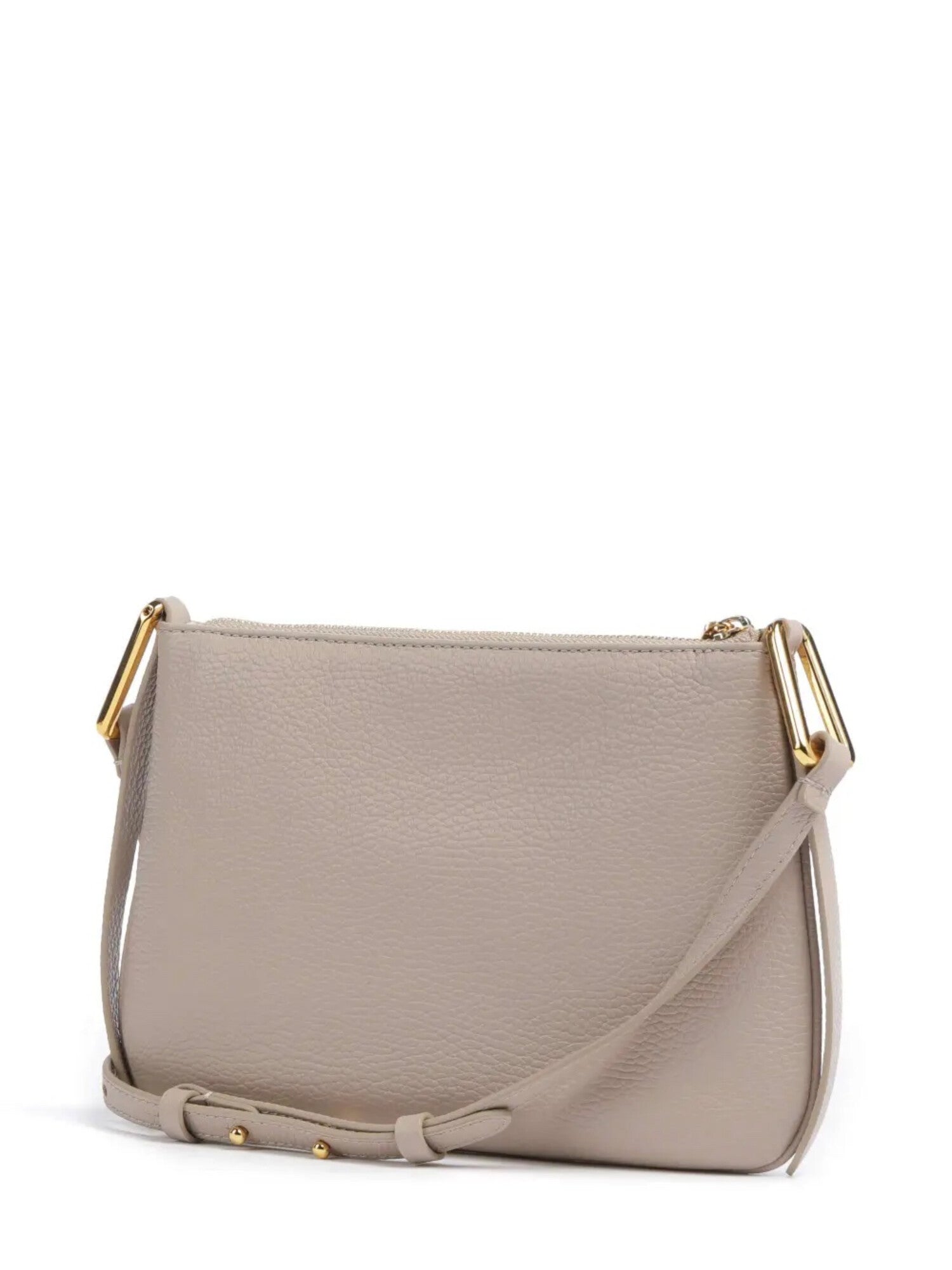 Borsa a tracolla in pelle martellata con tracolla. Dettagli in galvanica gold e logo stampato. Interno foderato e un unico scomparto con tasca. 100% Pelle. Dimensioni: 27 x 18 x 2 cm.