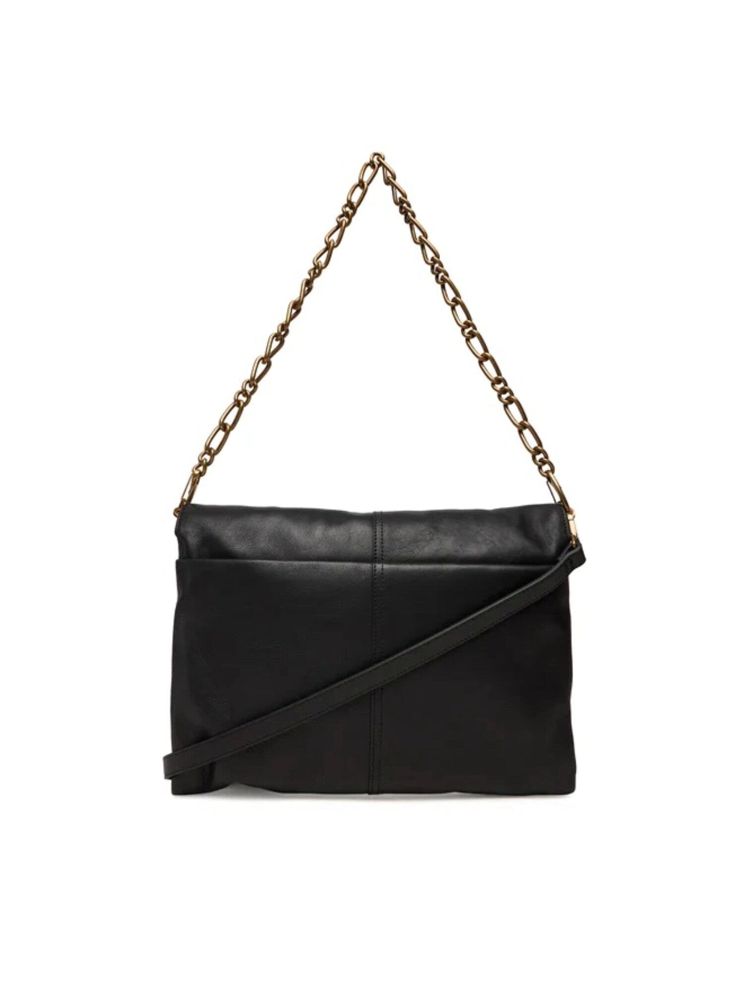 Borsa in pelle con tracolla e manico a catena removibili. Chiusura con zip. Dimensioni: 34x23x5 cm. 100% pelle