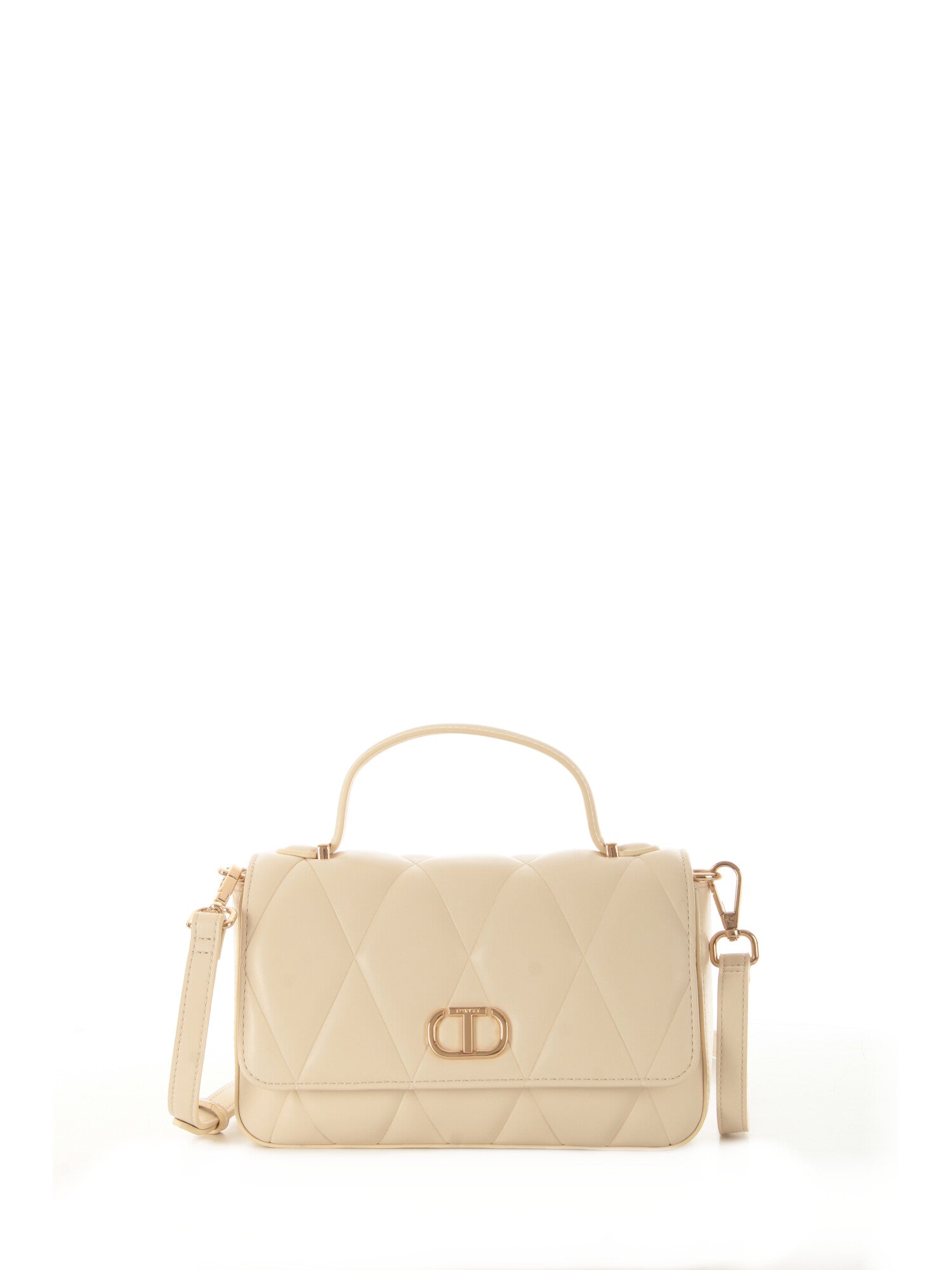 Borsa a tracolla cin simil pelle con trapuntature. Chiusura con patta e magnete. Tracolla removibile e dalla lunghezza regolabile. 100% poliuretano; fodera 100% poliestere