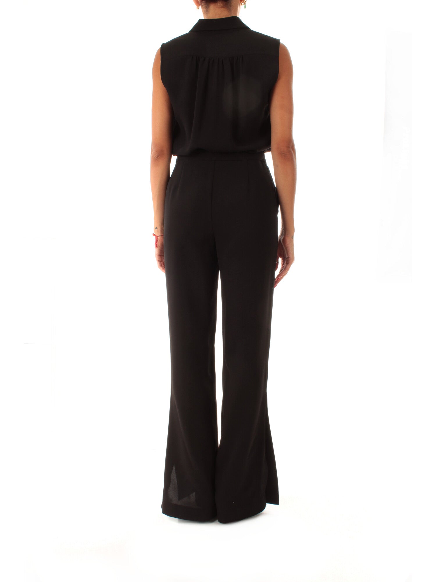 Completo in crêpe cady composto da blusa e pantaloni a palazzo. La blusa è smanicata, con colletto a camicia, chiusura con bottoni nascosti, linea morbida. I pantaloni hanno una fibbia logati davanti con Oval T e chiusura con zip al fianco. Puoi indossare il completo come una tuta intera allacciando in vita blusa e pantaloni con bottoni nascosti. Altezza modella: 172 cm. Taglia indossata: 38. 94% poliestere 6% elastan. Materiale 2: 100% poliestere