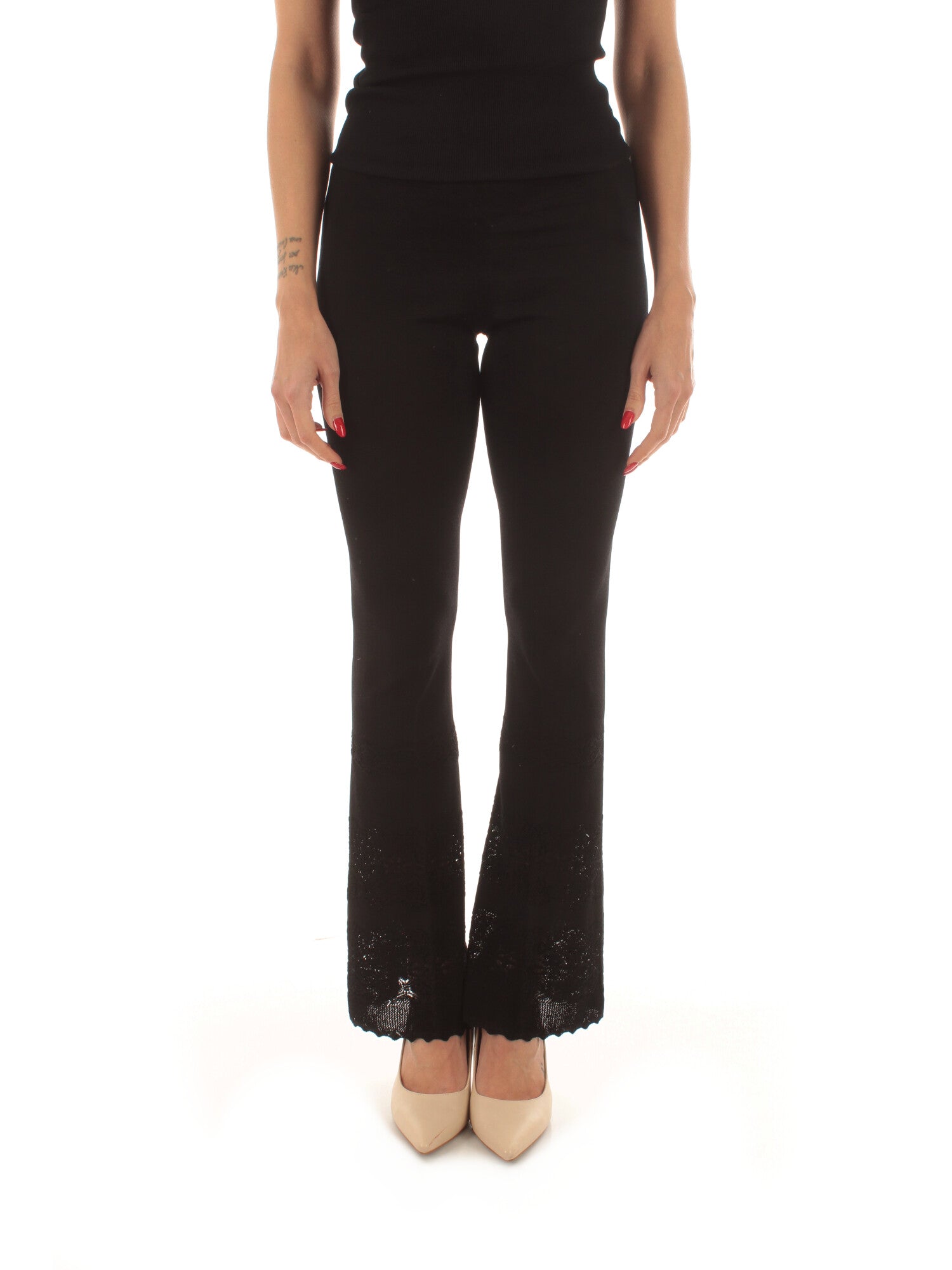 Twinset pantaloni in maglia con pizzo al fondo e inserto elastico in vita. Altezza modella: 170 cm. Taglia indossata: S. 65% viscosa, 35% poliammide