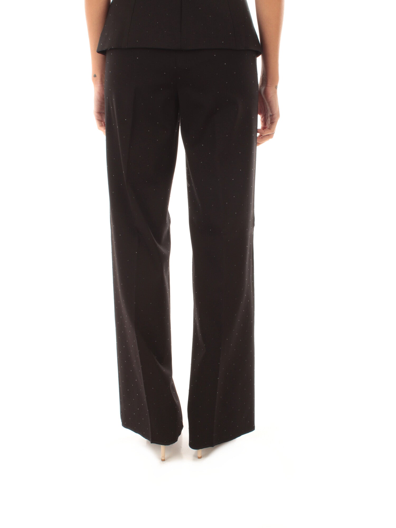 Pantalone in jersey punto Roma con applicazioni. Fit dritto. Apertura con zip e bottone a pressione nascosto. Tasche laterali alla francese. Piega stirata fronte e retro. Altezza modella: 172 cm. Taglia indossata: 40. 65% viscosa, 30% poliammide, 5% elastan