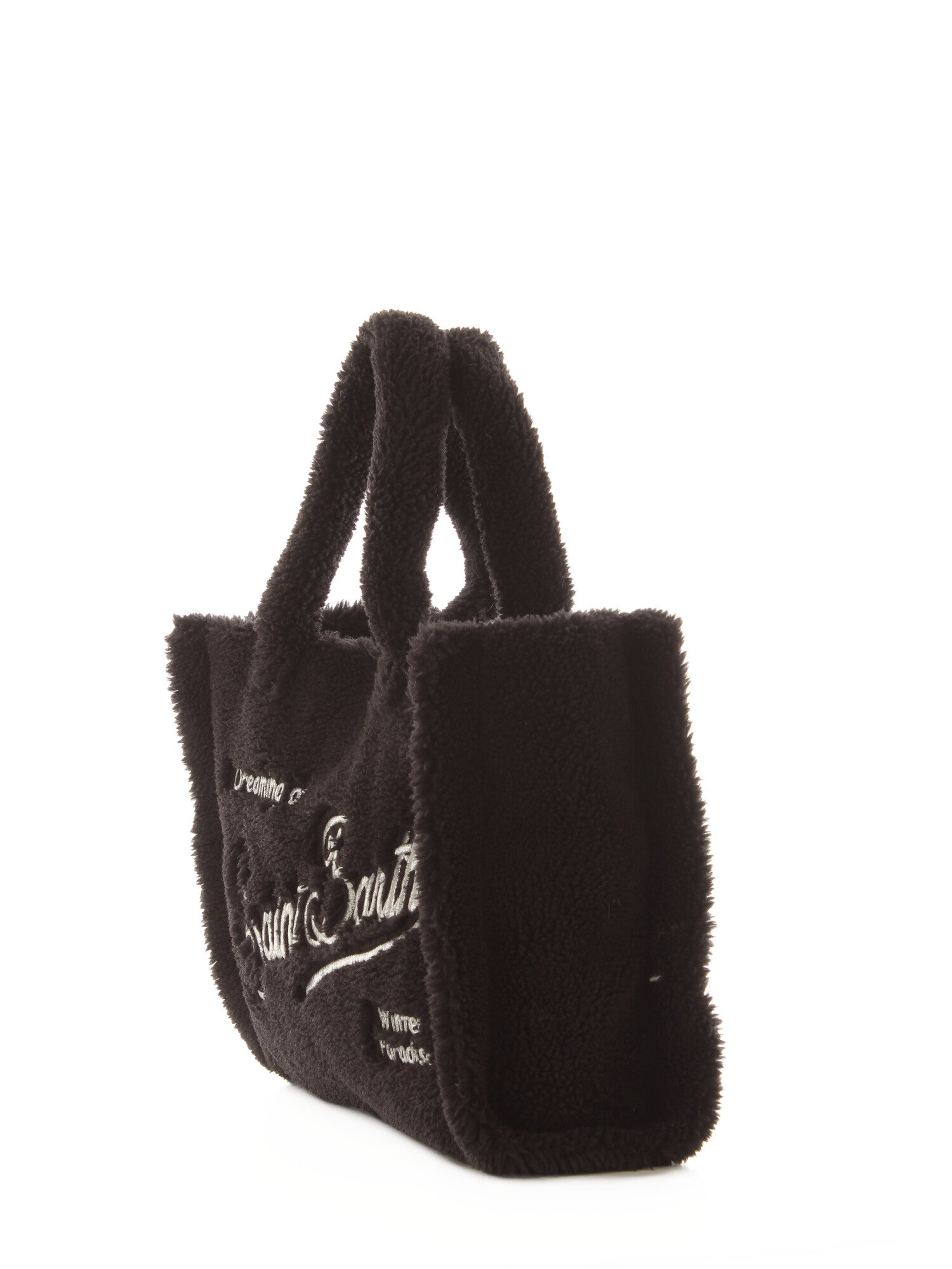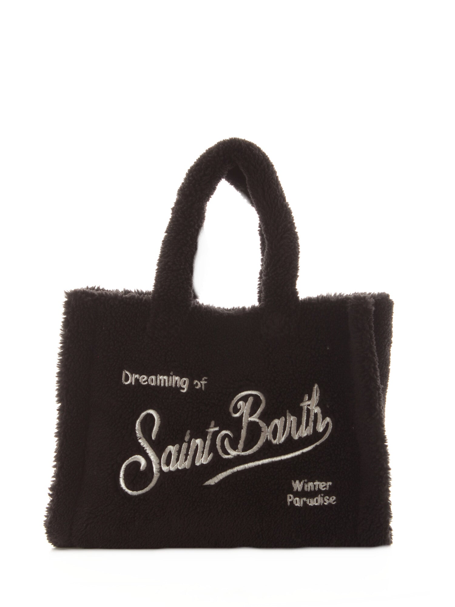 Borsa in morbido tessuto teddy con logo St.Barth ricamato e chiusura con automatico. Dimensioni: 34 x 30 x 10 cm. 100% poliestere