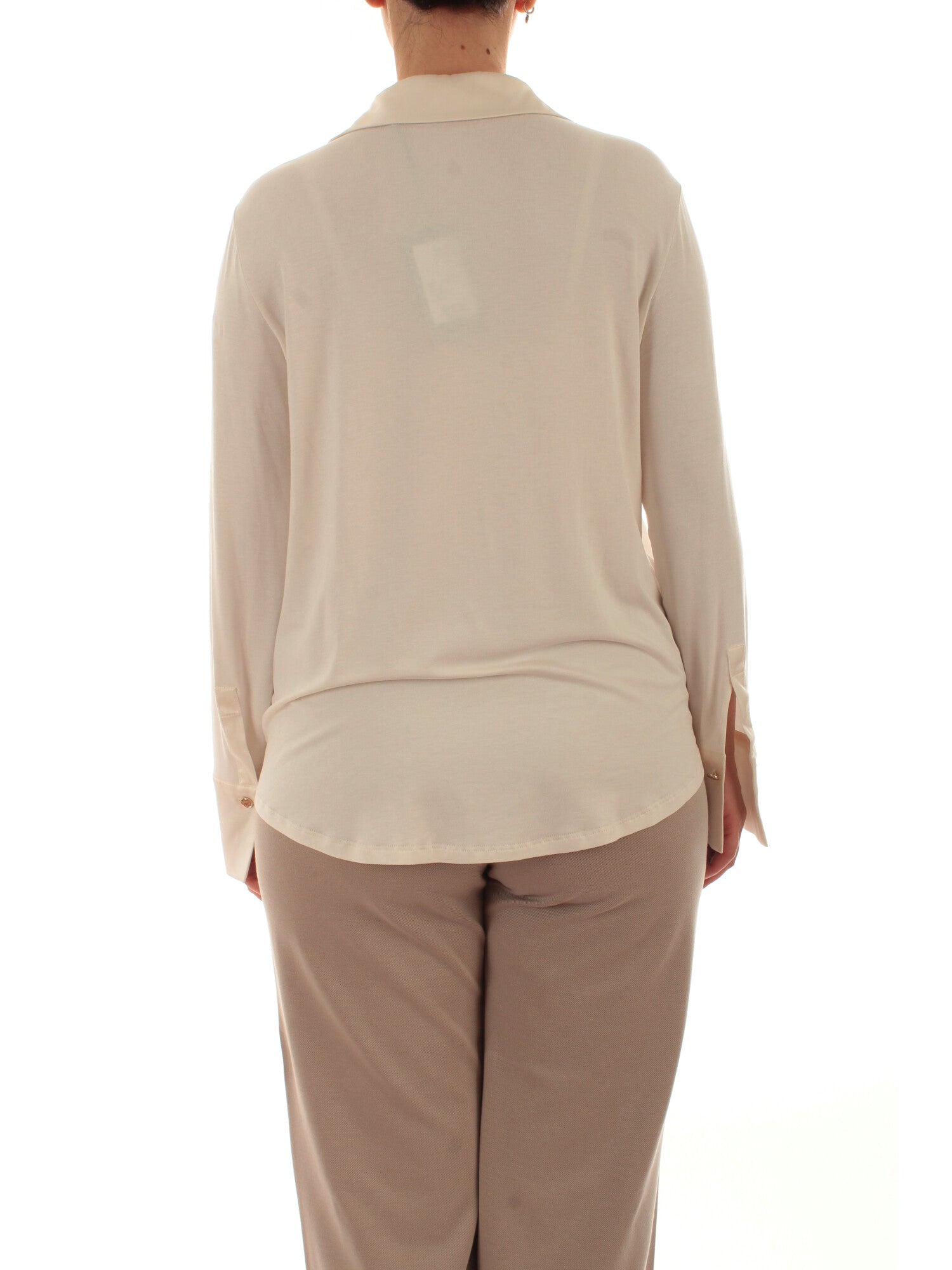 Elena Mirò t-shirt polo in due tessuti da donna panna