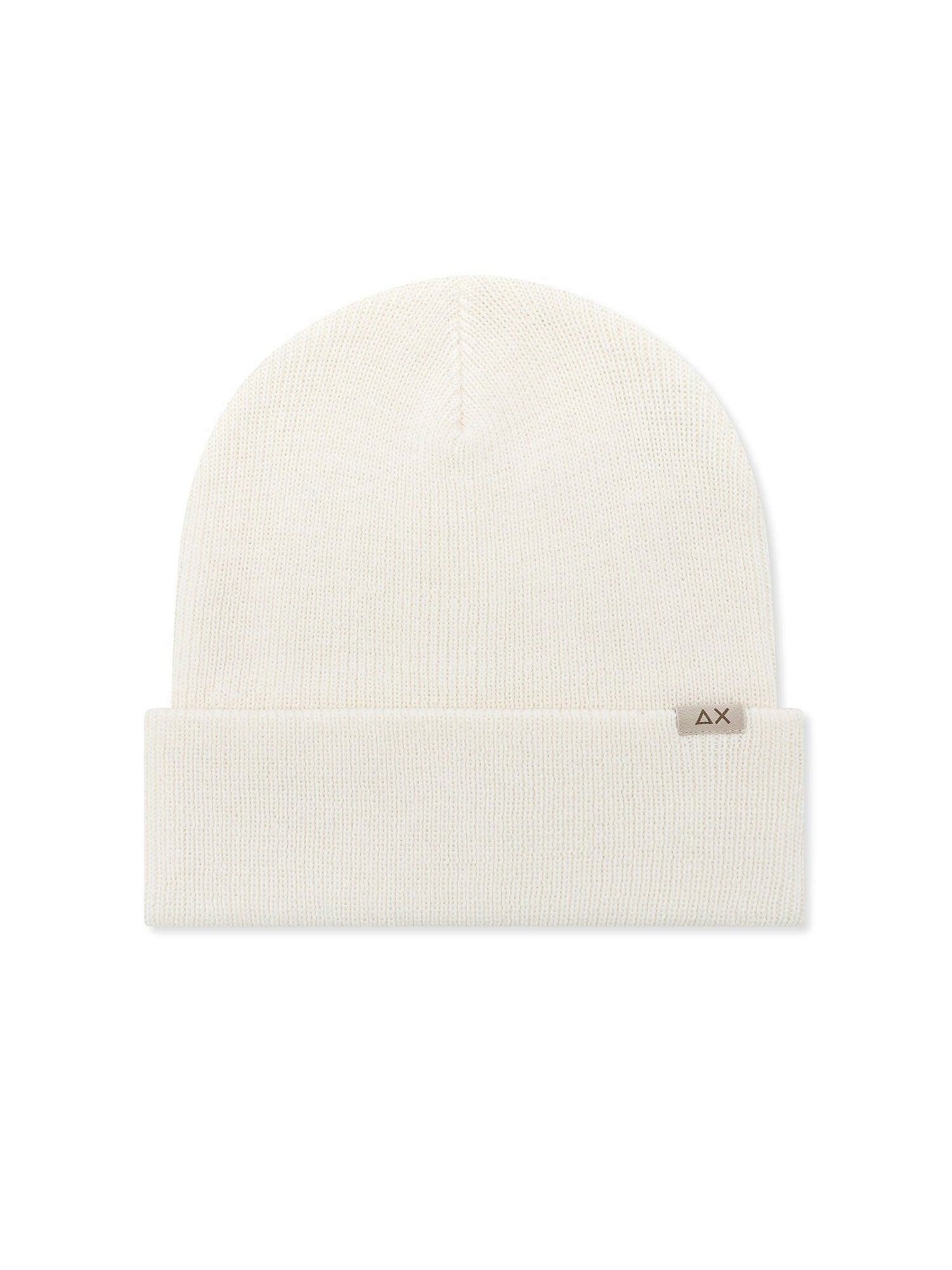 Sun 68 berretto beanie in misto lana a costine da uomo bianco panna