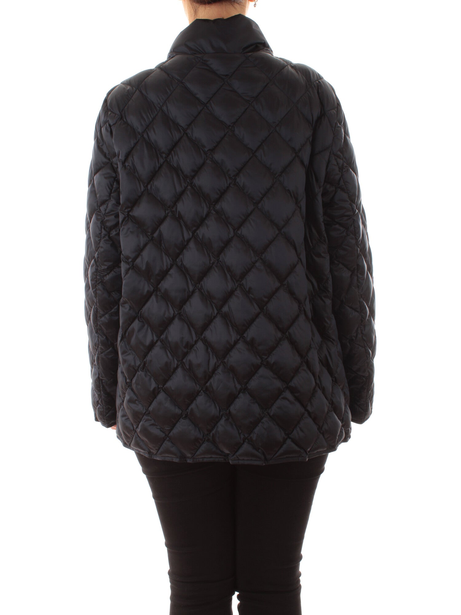 Imbottito in tela di nylon cangiante. Imbottitura in ovatta. Trapuntatura a rombi. Linea leggermente svasata. Collo in piedi. Chiusura con bottoni a pressione ricoperti. Tasche a filetto. Altezza modella: 170 cm. Taglia indossata: 19. 100% poliammide