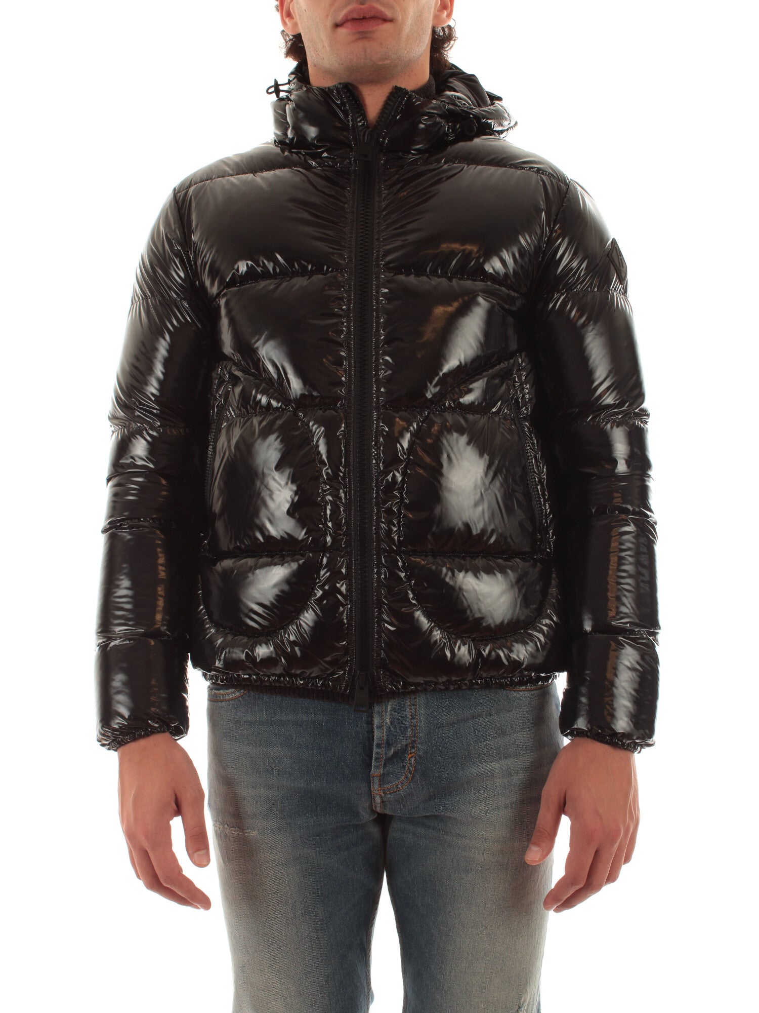 Bomber realizzato nell'iconico gloss, un tessuto estremamente lucido effetto lacca che esalta la brillantezza dei colori e la contemporaneità del look. Cappuccio con coulisse. Chiusura con zip a doppio cursore. Tasche a filetto con bottone automatico. Imbottitura in piuma d'oca. Altezza modello: 185 cm. Taglia indossata: 48. 100% poliammide; spalmatura in 100% poliuretano