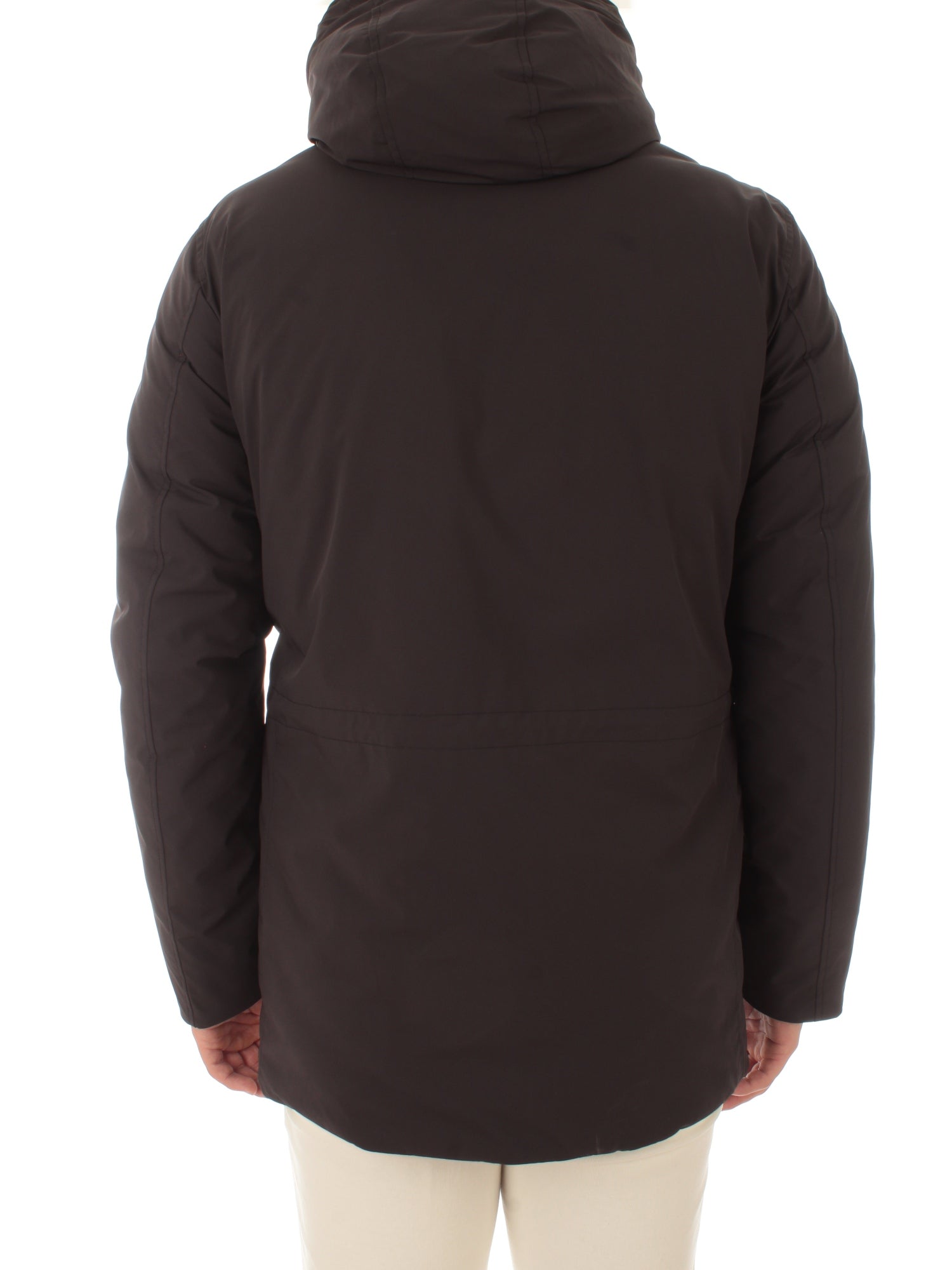 Capospalla realizzato in nylon elasticizzato, impermeabile e antivento. Imbottitura in piuma d'anatra 90/10 (70%) e fibre di grafene (30%), cappuccio con fermacorda sul retro. Chiusura con zip e bottoni, coulisse interna, tasche scaldamani con zip gommata e bottoni a pressione, tasche con patta e bottoni, polsini interni a costine, tasche interne, tasca interna verticale con zip impermeabile, badge con logo sulla manica sinistra. Altezza modello: 190 cm. Taglia indossata: L. Esterno: 84% Poliammide, 16% Elastane. Interno: 100% Poliammide. Imbottitura: 63% Piumino d'anatra grigia, 30% Poliestere, 7% Piume d'anatra.