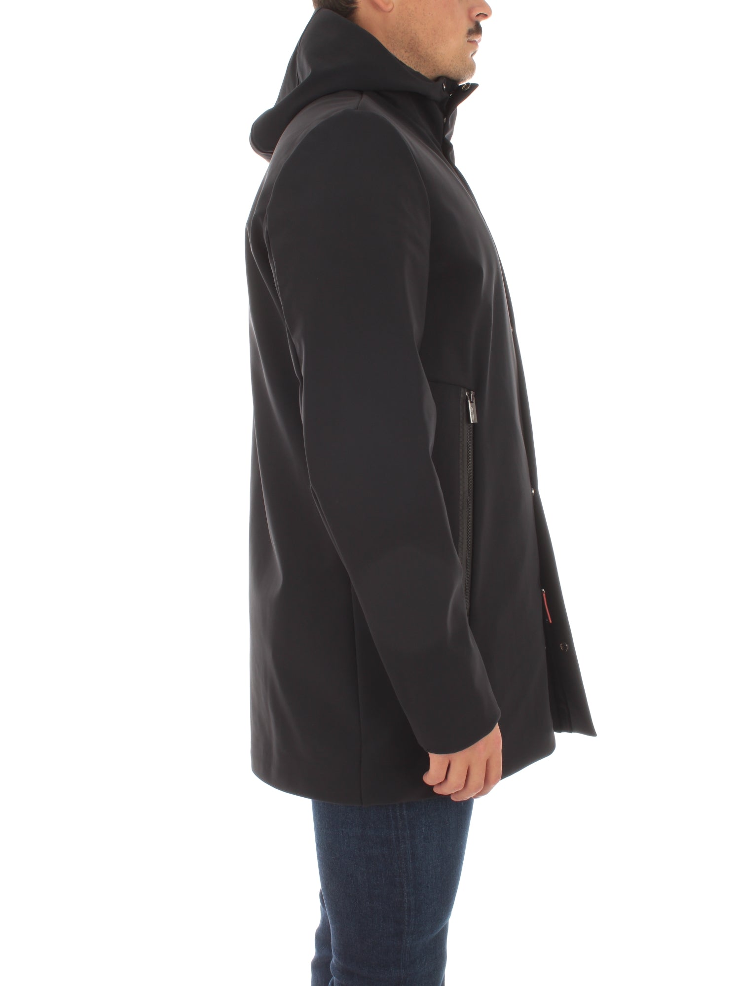 La giacca trequarti dalla vestibilità diritta è realizzata nel tessuto a membrana Stratofabric