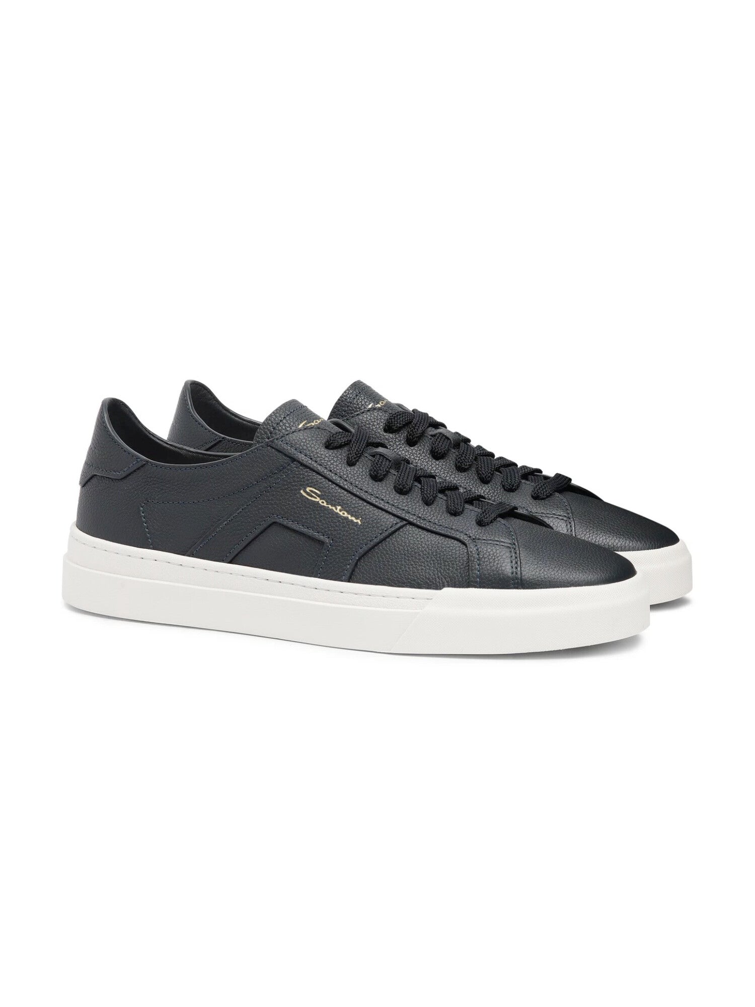 Sneaker low top in pelle bottalata. Sfoderata e destrutturata. Dettaglio in pelle logata sulla linguetta e sul tallone. Dettaglio in pelle d'ispirazione doppia fibbia sui lati. Chiusura con lacci. Suola a cassetta in gomma. Lettering Santoni inciso sul battistrada. Made in Italy. 100% pelle