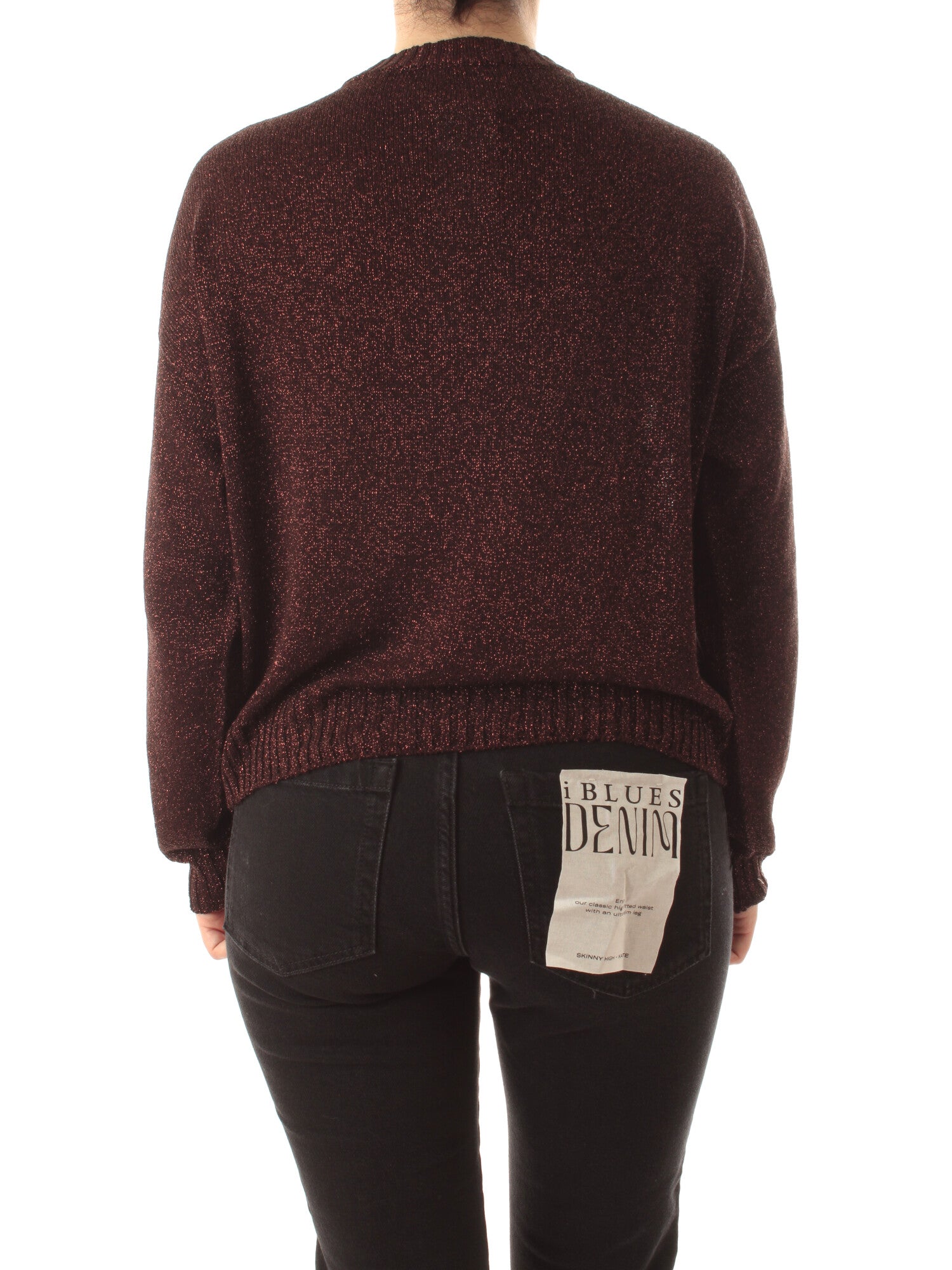 Maglia girocollo in filato lurex a manica lunga con bordi a coste. Altezza modella: 172 cm. Taglia indossata: S. 80% viscosa, 20% fibra metallizzata