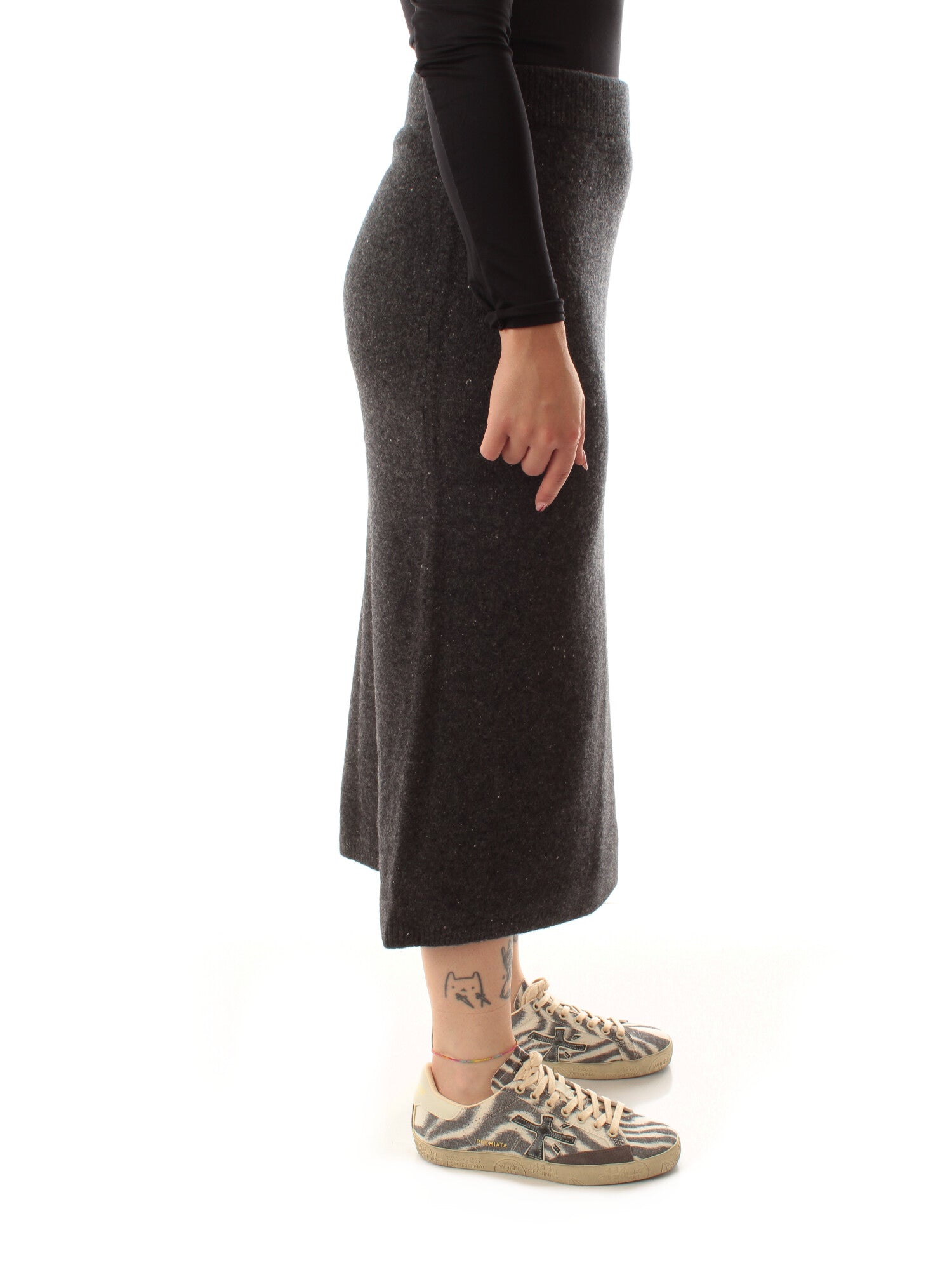 Gonna lunga in maglia misto lana e cotone. Linea aderente. Chiusura con elastico in vita. Spacco laterale. Fit aderente. Altezza modella: 172 cm. Taglia indossata: S. 48% lana, 23% poliammide, 20% cotone, 5% seta, 4% elastan