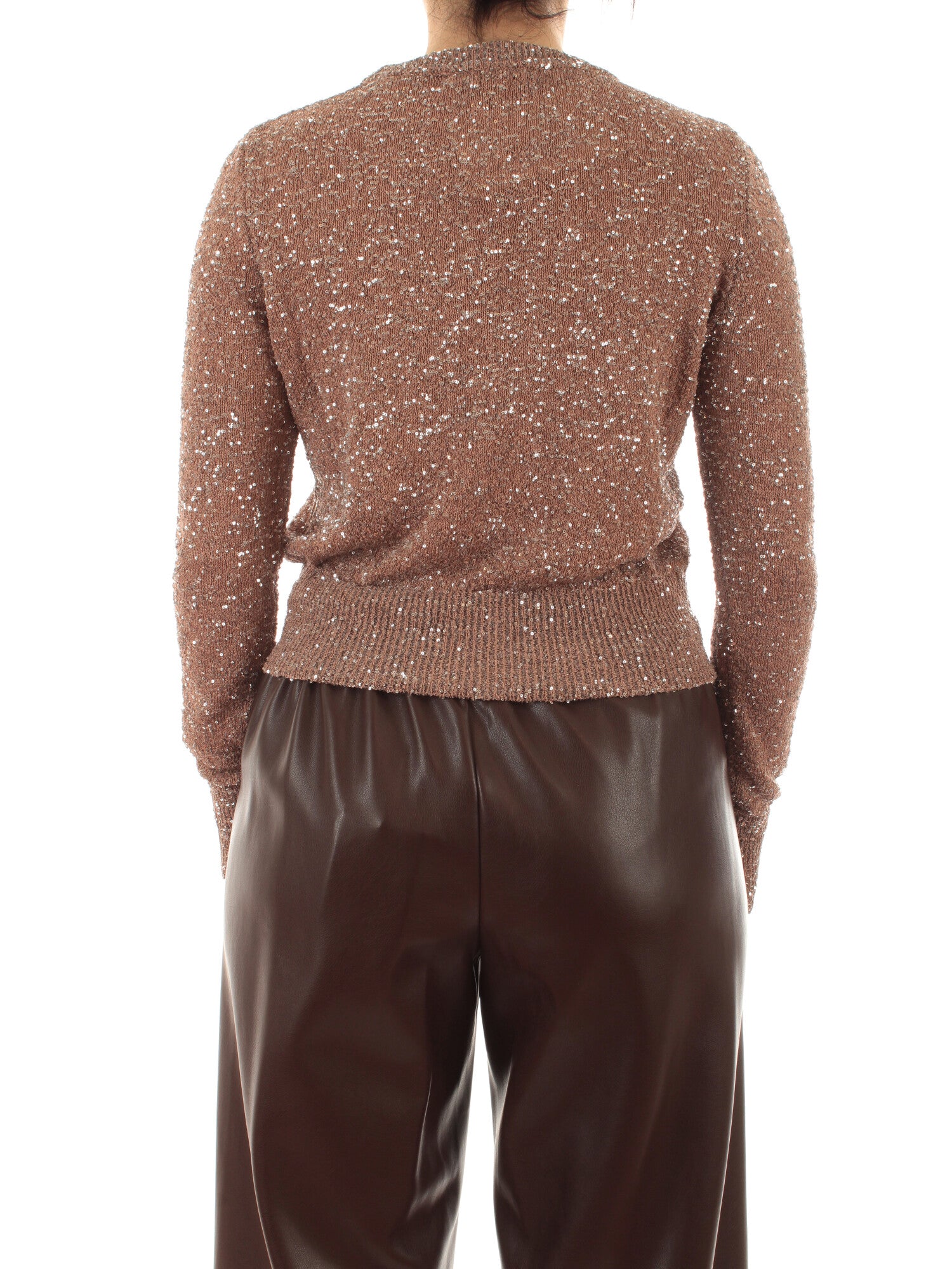 Maglia girocollo in full paillettes con manica lunga e bordi a costine. Sfoderata. Altezza modella: 170 cm. Taglia indossata: S. 55% poliammide, 45% poliestere
