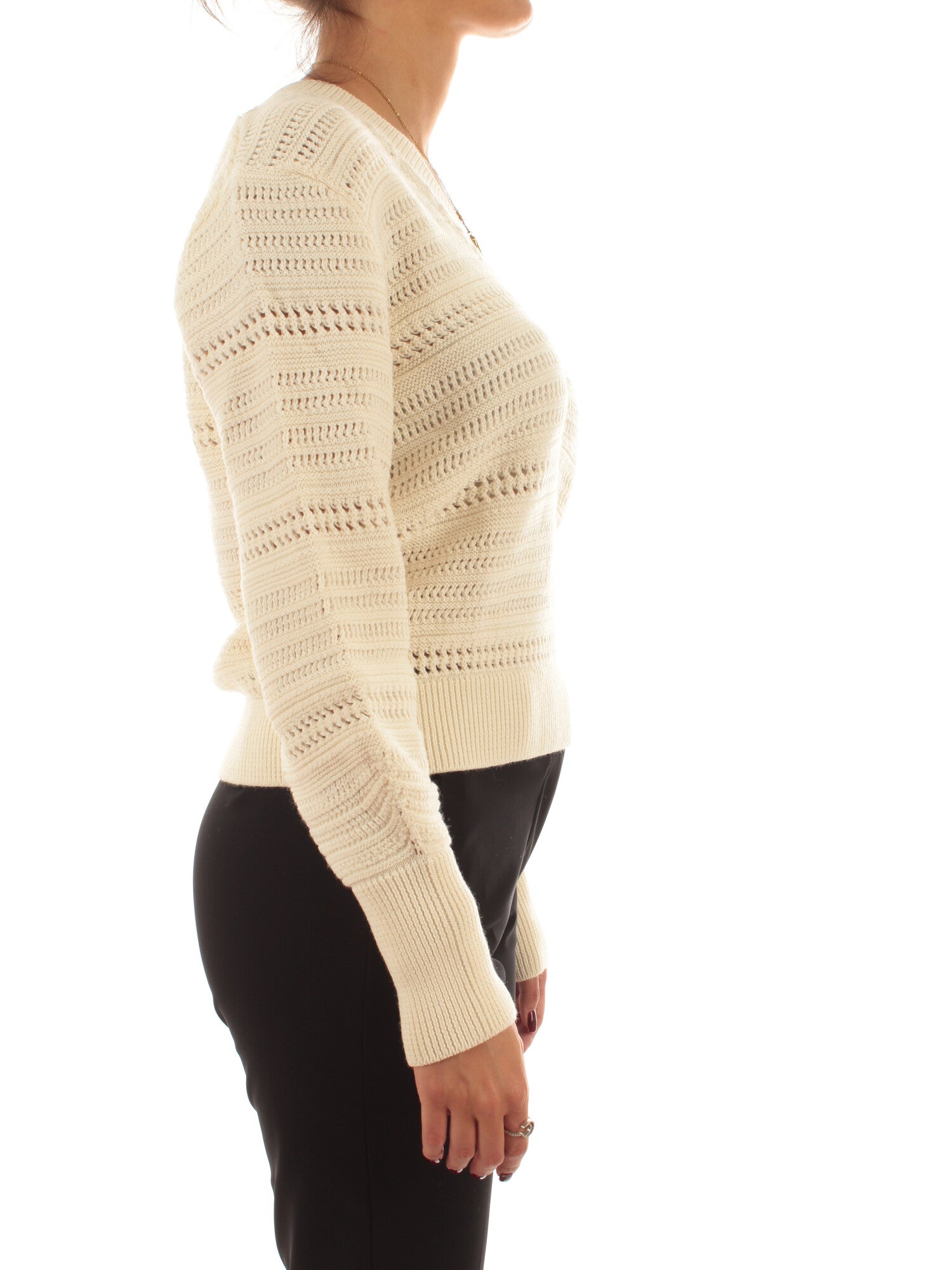 Maglia a maniche lunghe con scollo a V, realizzata in morbida lana merino extrafine, nota per la sua leggerezza, traspirabilità e comfort termico. Altezza modella: 172 cm. Taglia indossata: S. 50% LANA MERINO, 50% ACRILICO