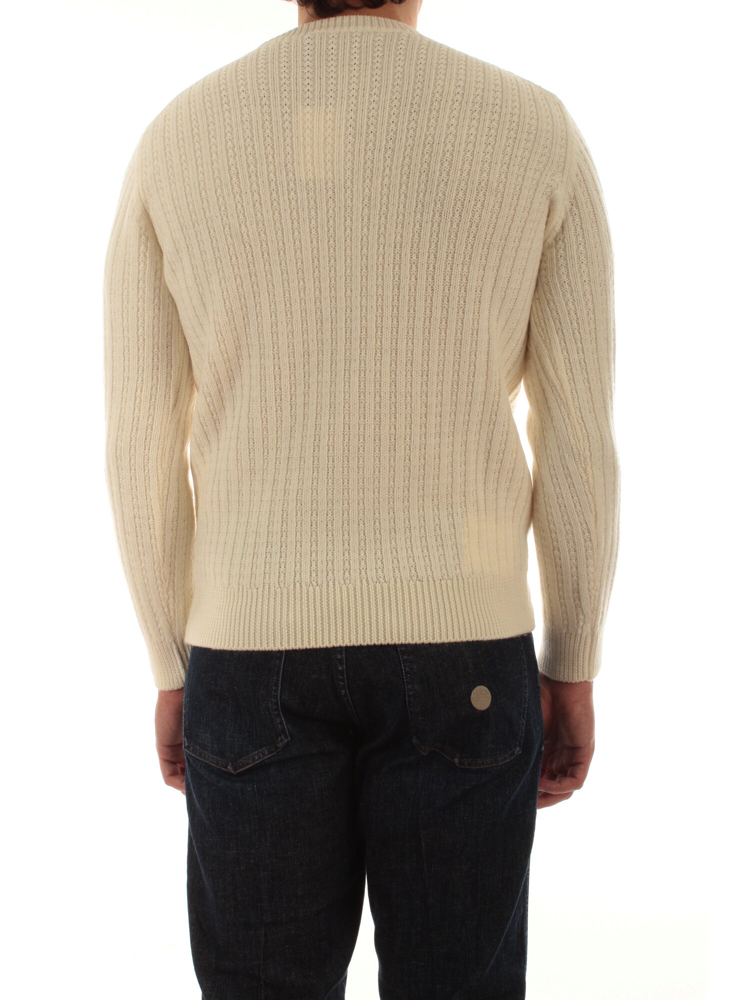 Maglia girocollo a trecce con bordi a costine. Altezza modello: 185 cm. Taglia indossata: 50. 100% lana merino
