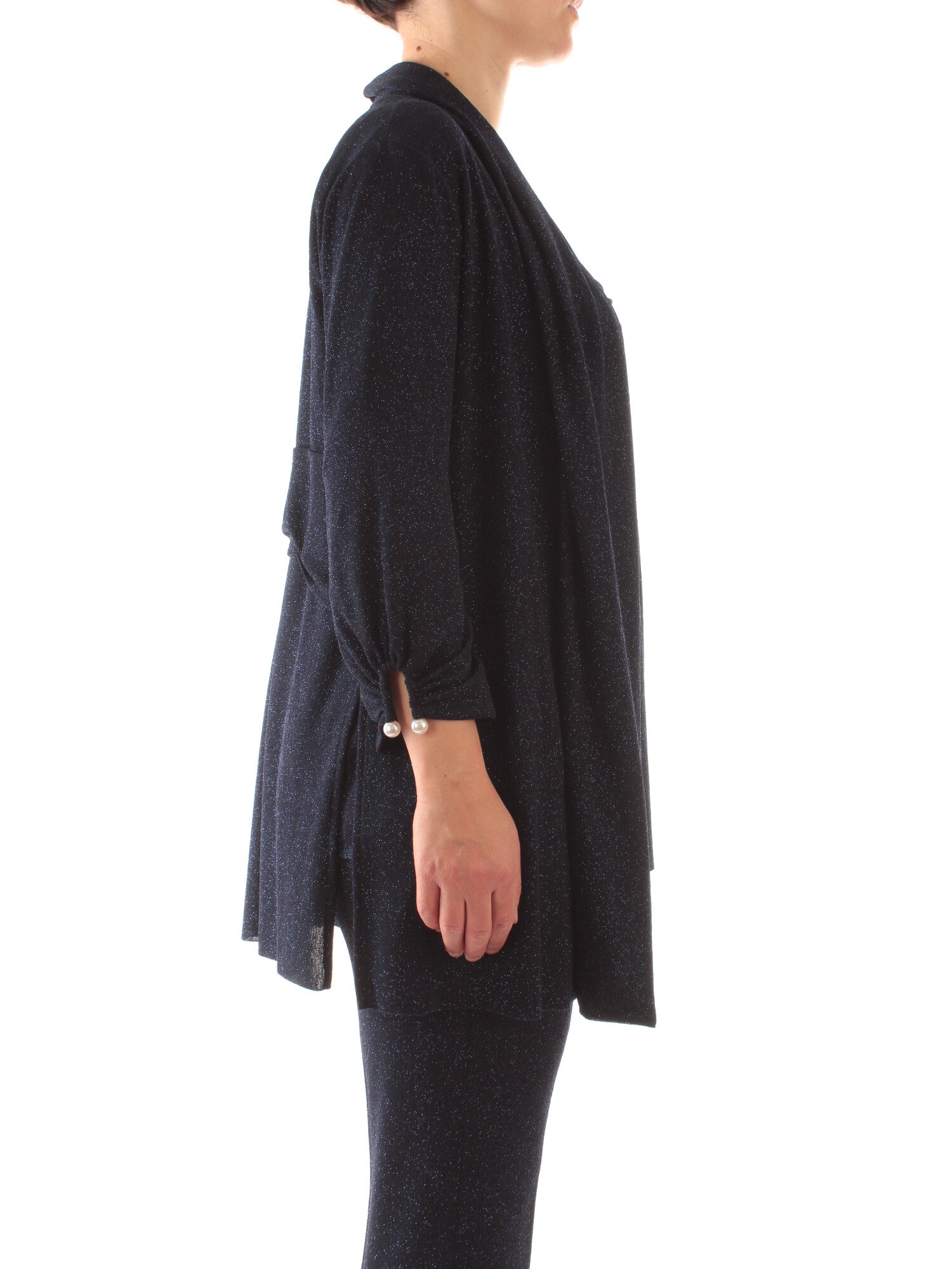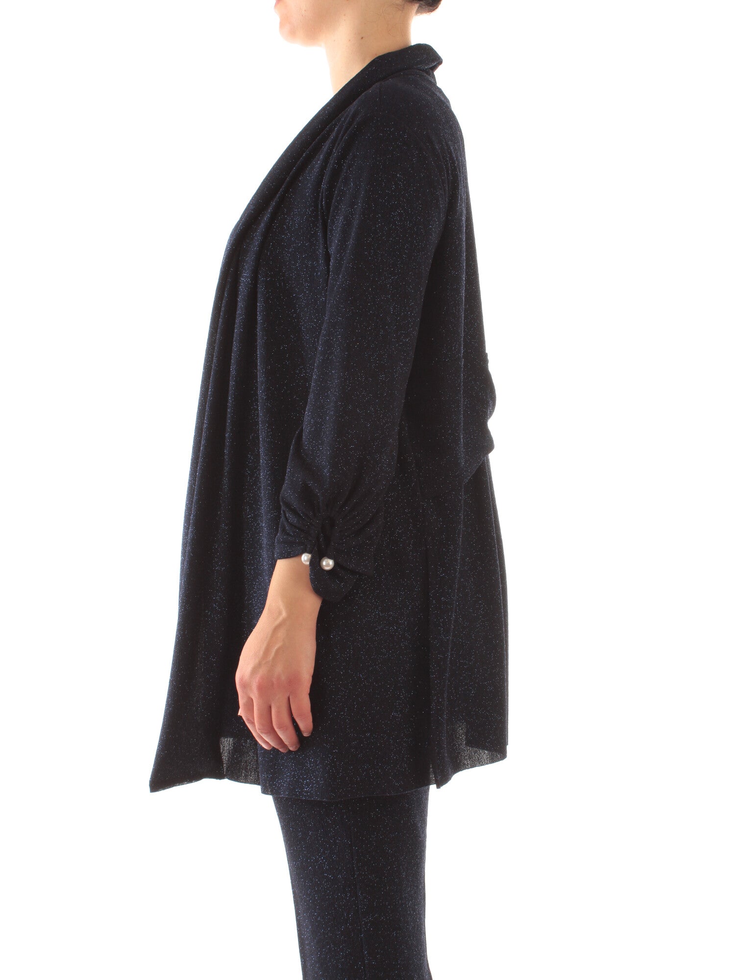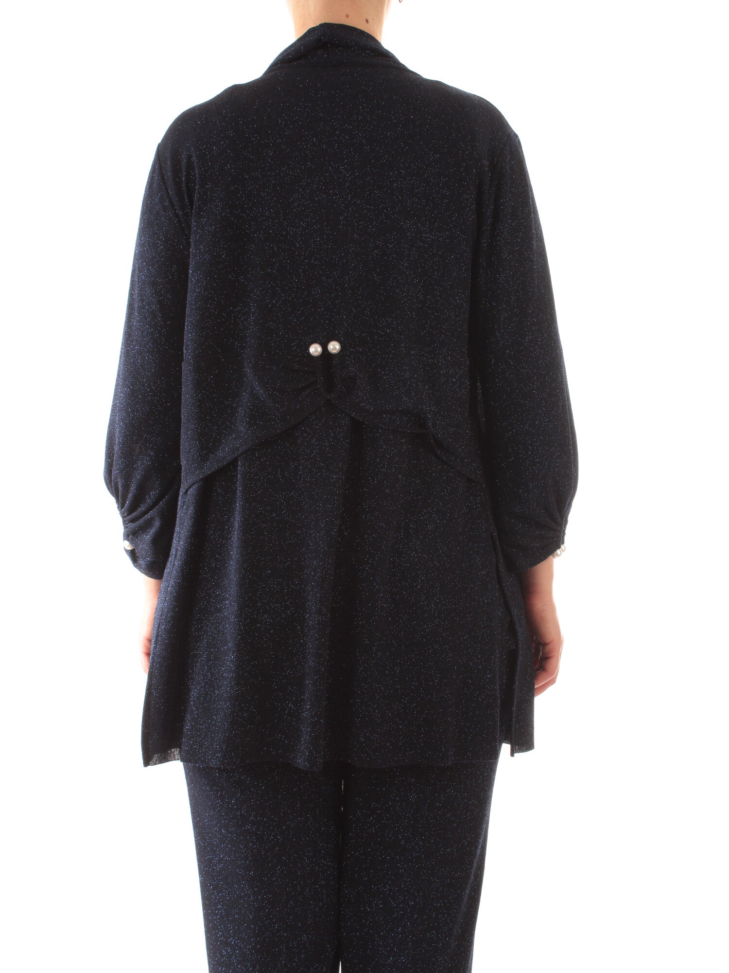 Spolverino in maglia con lurez, maniche a tre quarti e dettagli gioiello. Modello senza abbottonatura. Altezza modella: 170 cm. Taglia indossata: 46. 95% poliestere, 5% elastan