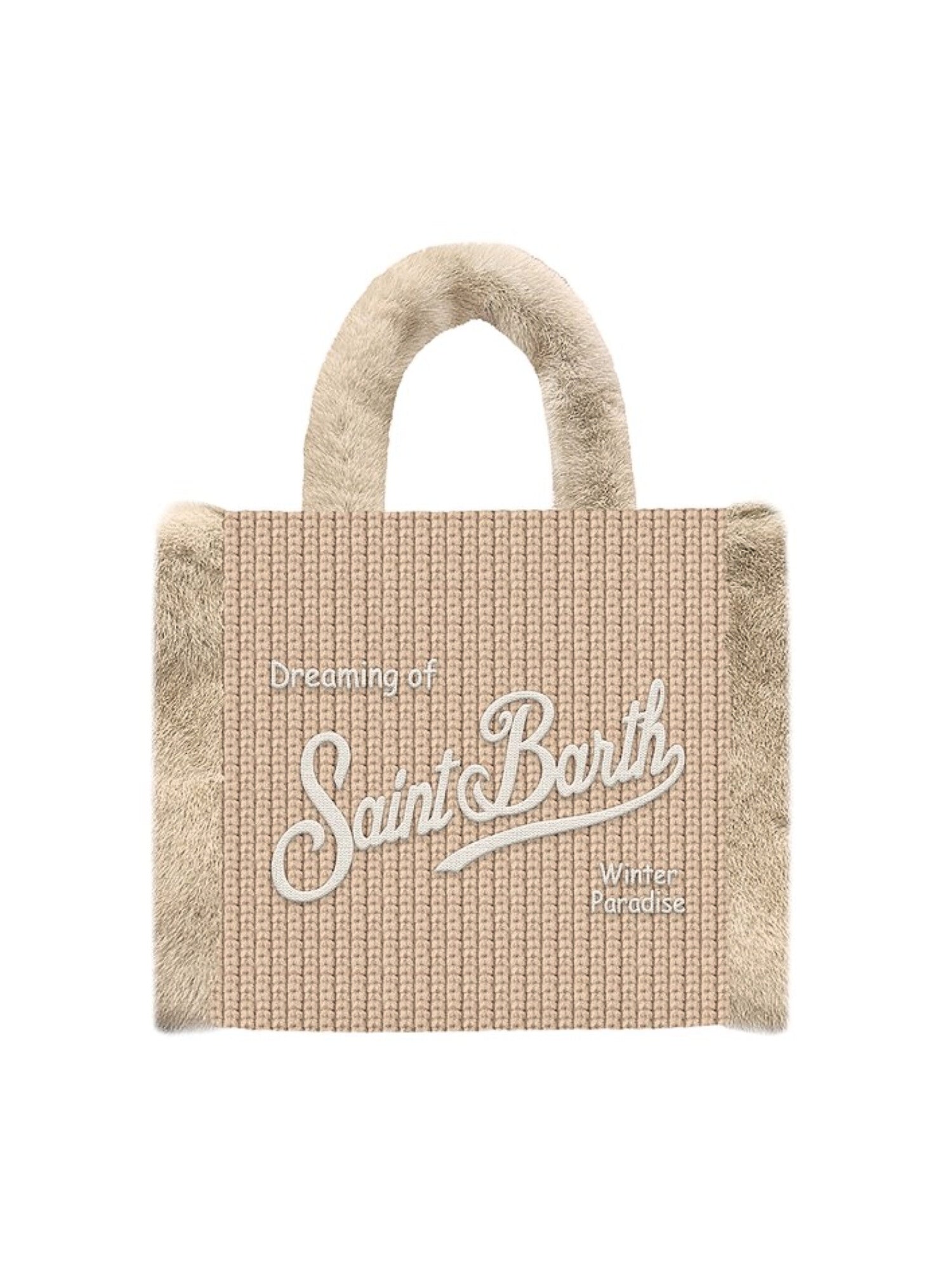Borsa Colette in tessuto shearling. Tasca interna con zip e logo St. Barth ricamato. Chiusura con bottone a pressione. Tracolla regolabile rimovibile. Fodera in tessuto. Dimensioni: 30 x 24 x 13 cm. 100% Poliestere.