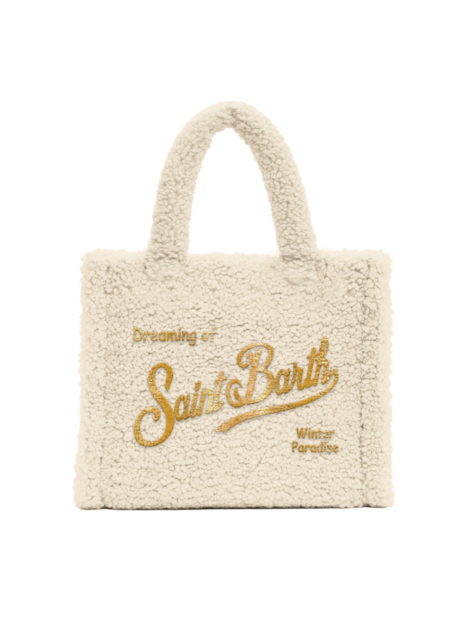 Borsa Colette in tessuto teddy. Tasca interna con zip e logo St. Barth ricamato. Chiusura con bottone a pressione. Tracolla regolabile rimovibile. Fodera in tessuto. Dimensioni: 30 x 24 x 13 cm. 100% Poliestere.