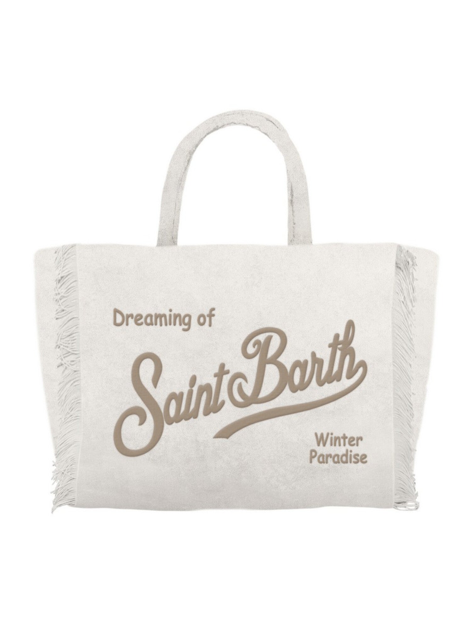 Borsa in velluto con logo St.Barth ricamato. Chiusura con zip. Doppi manici. Tracolla removibile. Orli sfrangiati. 21 x 18 x 10 cm. 100% poliestere