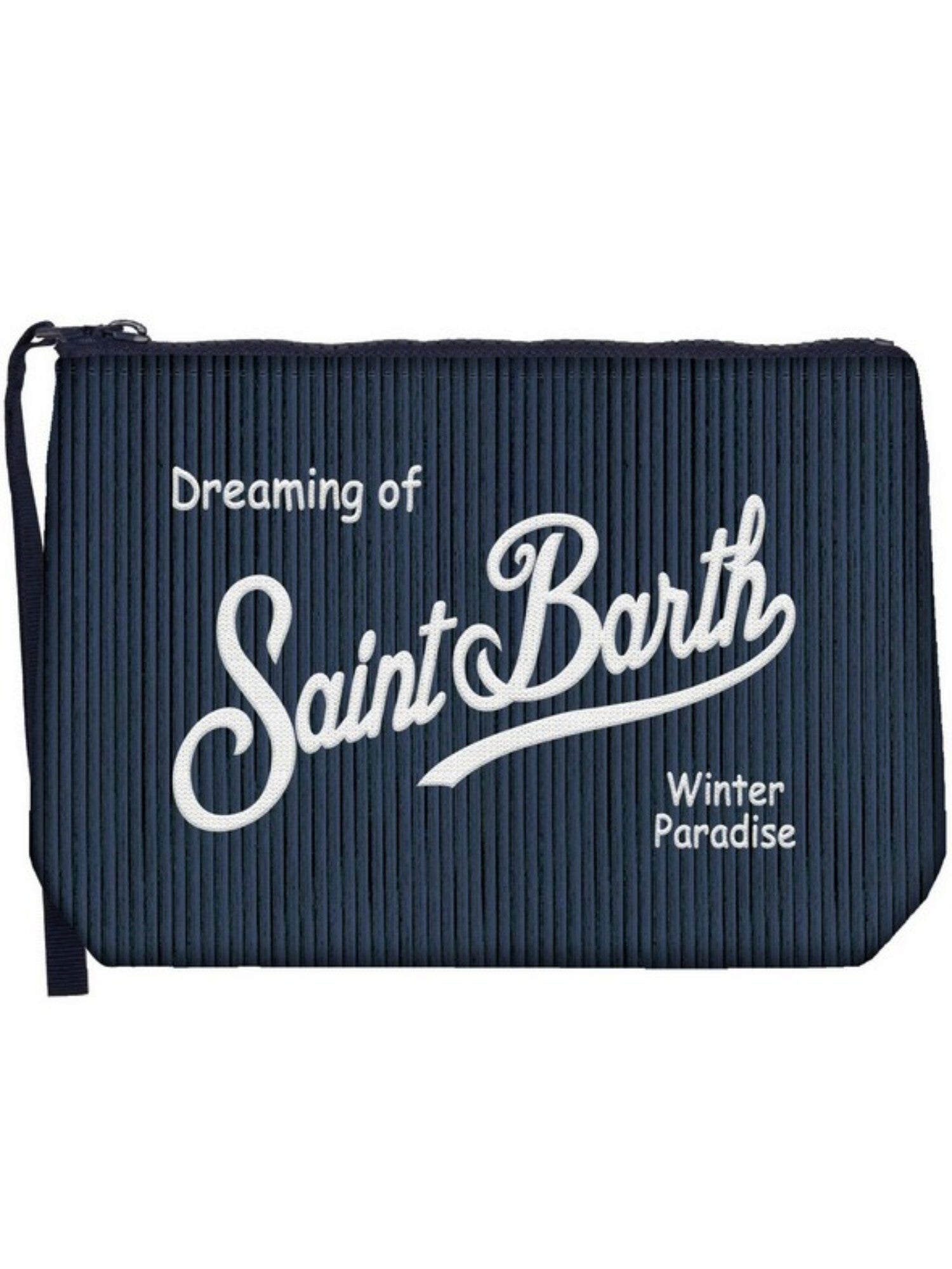 Pochette in velluto a coste con interno in tessuto scuba. Manico singolo e zip. Logo St. Barth ricamato su entrambi i lati. Dimensioni: 20 x 14,5 x 7 cm. 100% poliestere; interno 70% SBR, 30% Poliestere
