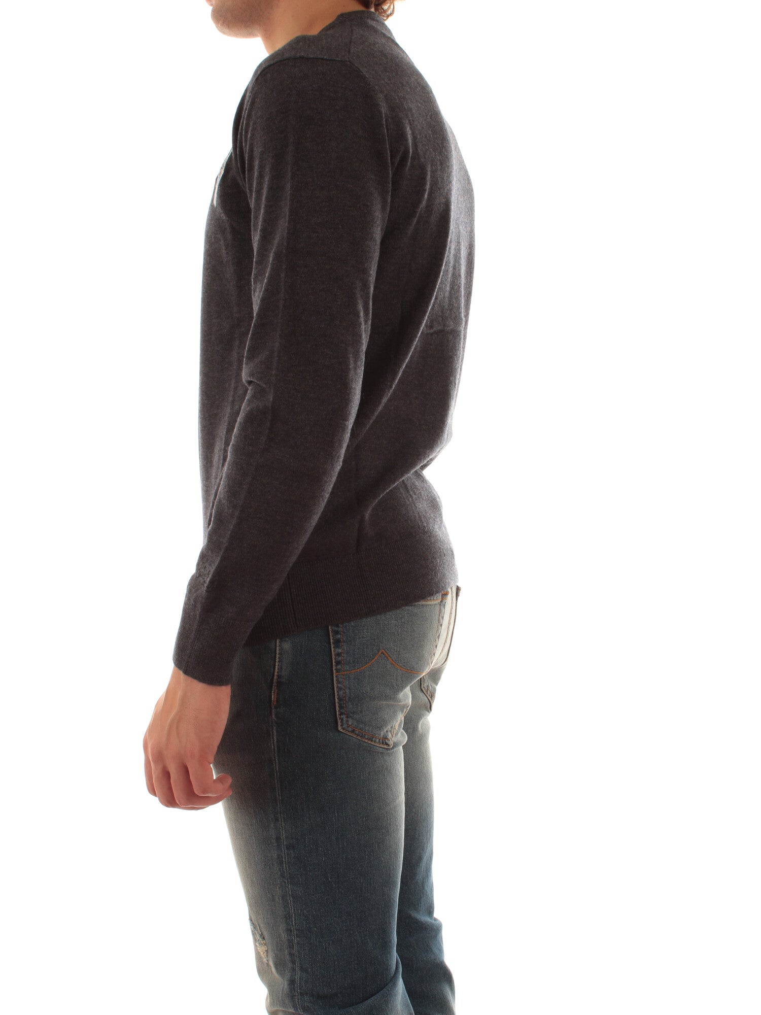 Maglia misto cashmere con girocollo, ricamo a contrasto, orlo a costine e maniche lunghe con polsini a coste. Altezza modello: 185 cm. Taglia indossata: M. 35% Lana, 30% Viscosa, 20% Cashmere, 10% Poliammide