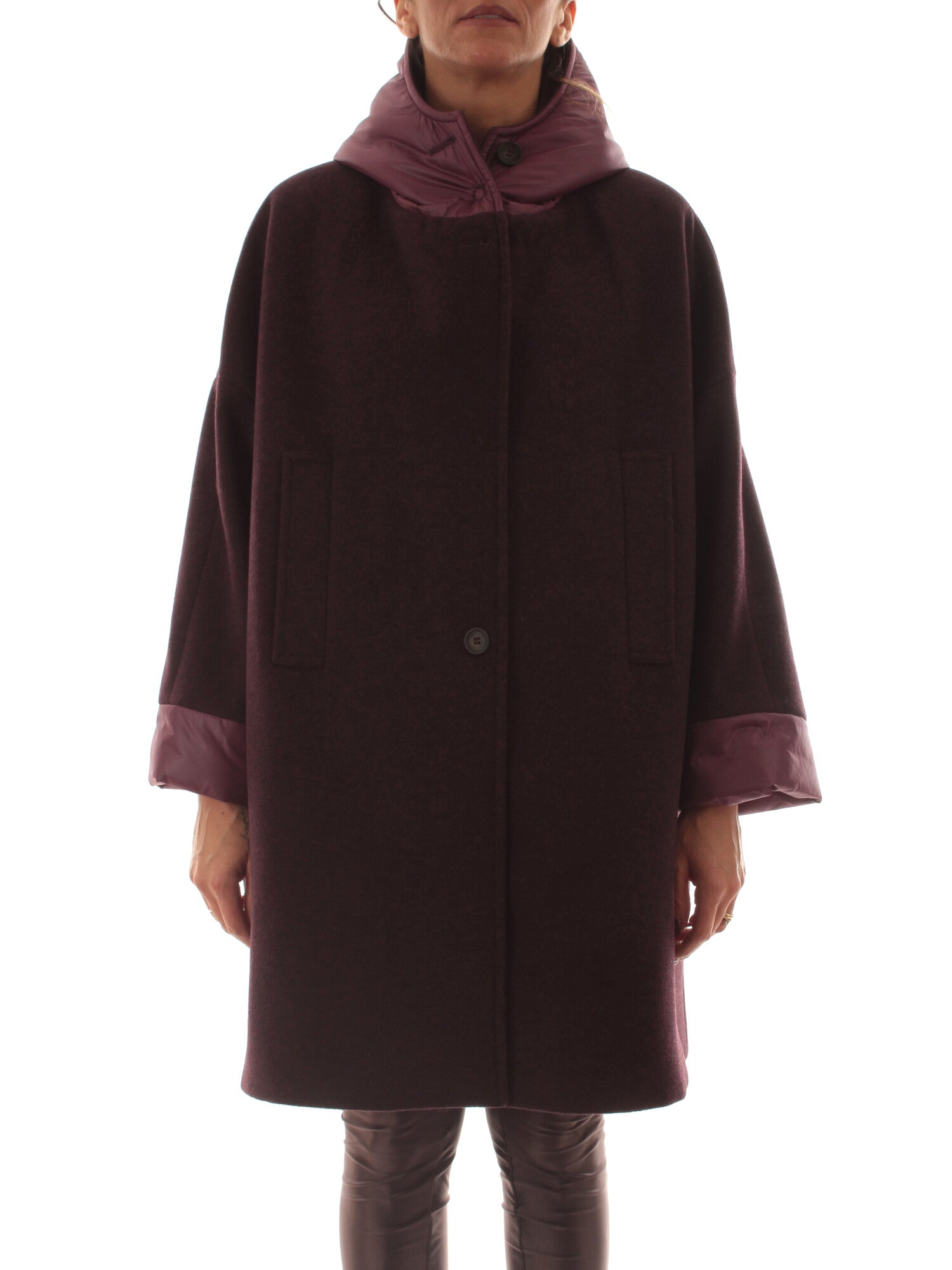 Cappotto in panno con tessuto e fodera in tessuto impermeabile. Chiusura centrale con bottoni a pressione e tasche a filo. Altezza modella: 170 cm. Taglia indossata: 38. 88% poliestere, 12% viscosa