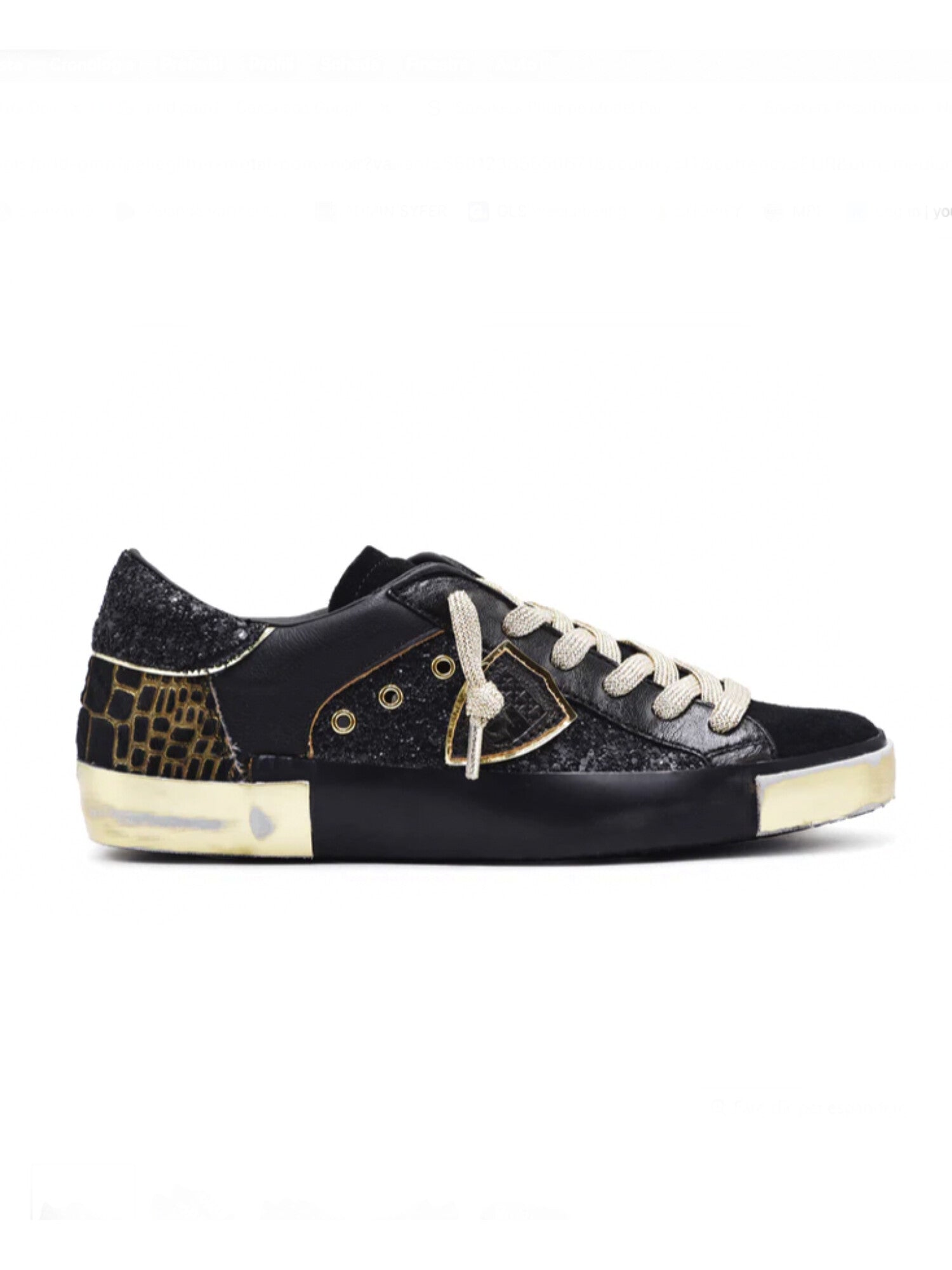 Philippe Model PARIS LOW sneakers da donna glitter metal noir